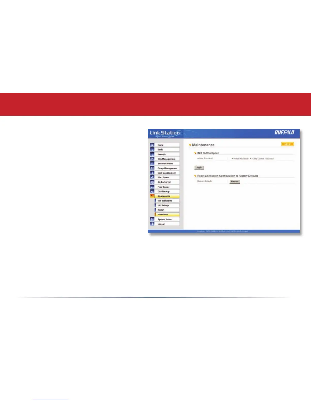 Press the Restore button to begin the initialization process; this will restore all settings to factory