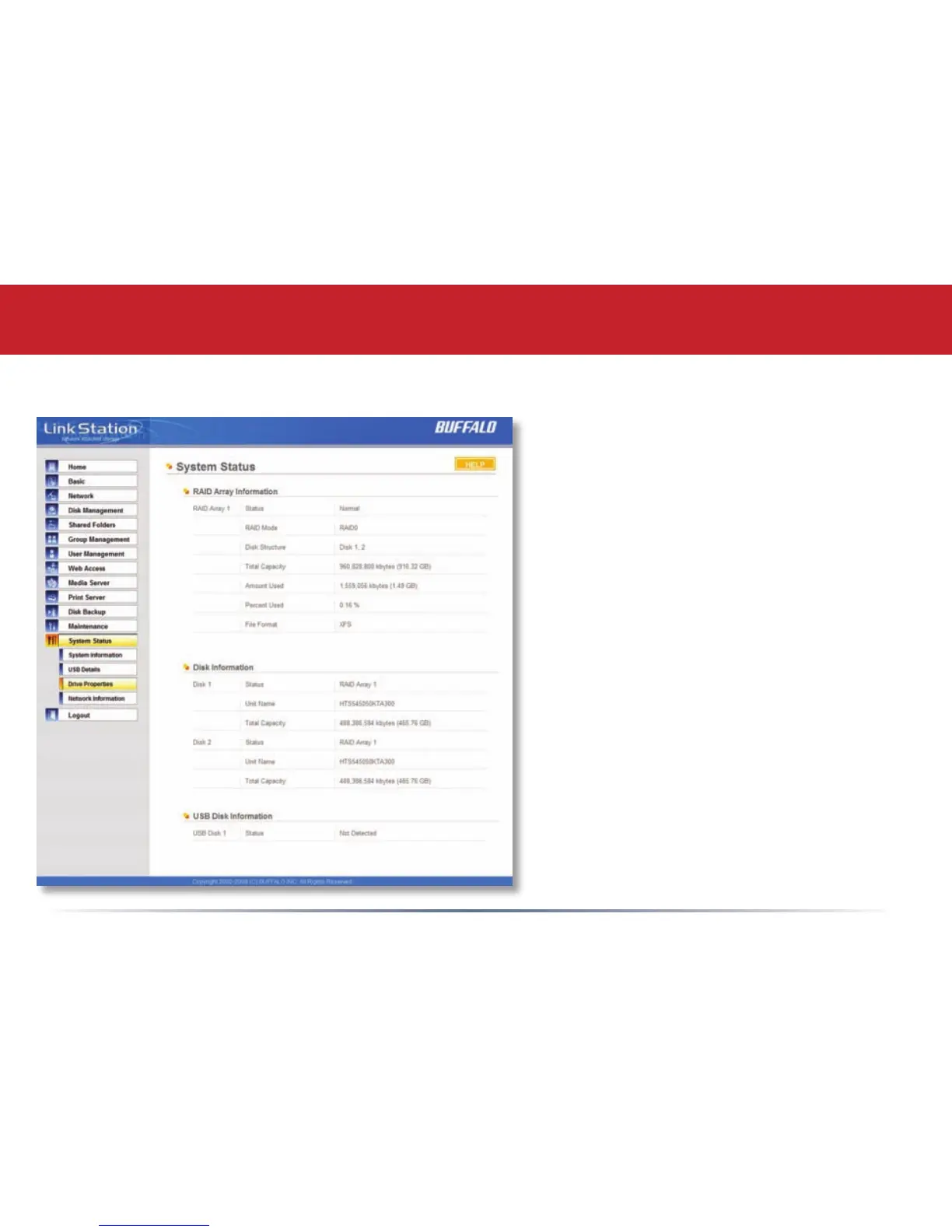 Buffalo LinkStation Mini - System Status - Drive Properties
