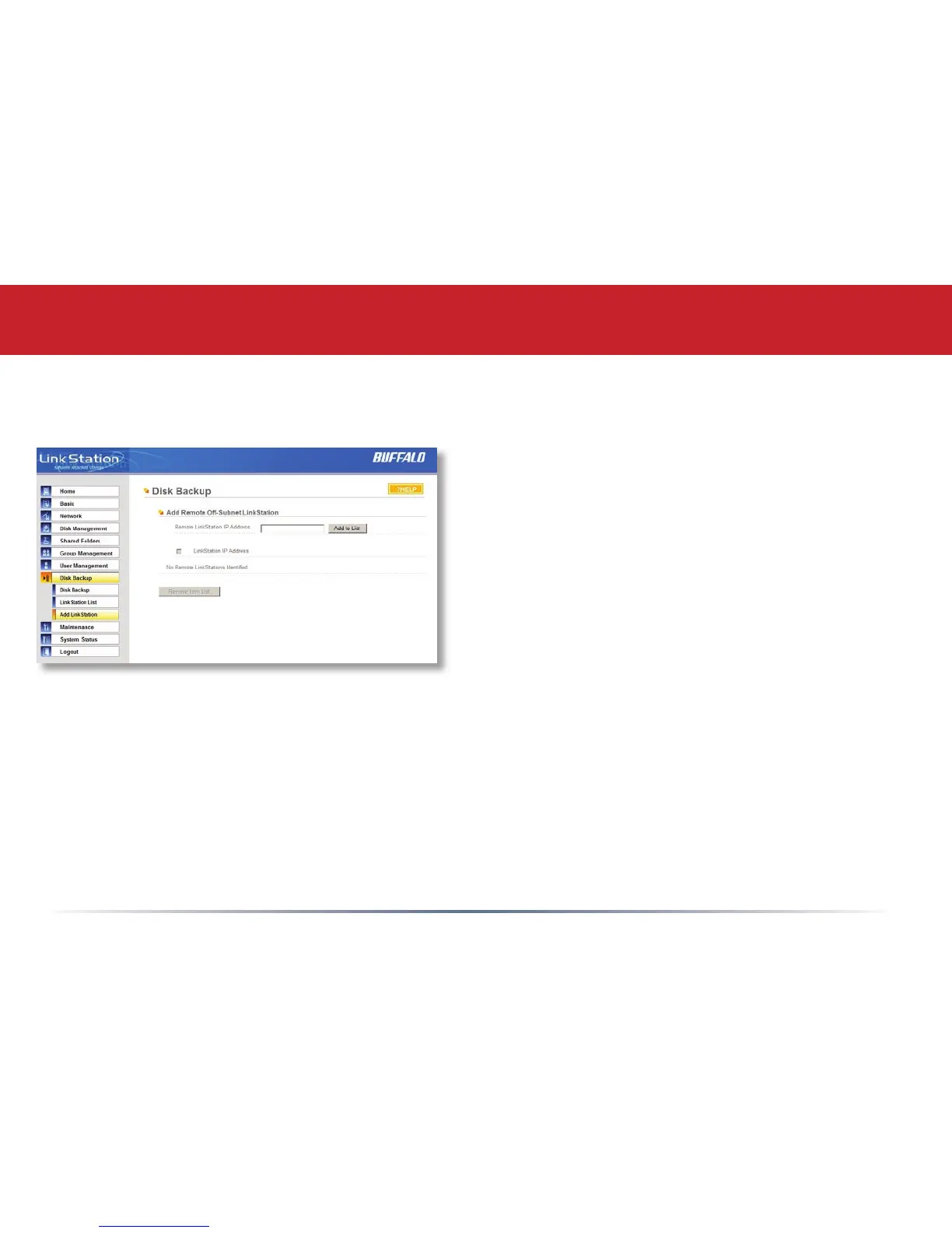LinkStation IP Address eld and click the Add to List button. For remote LinkStation backups,