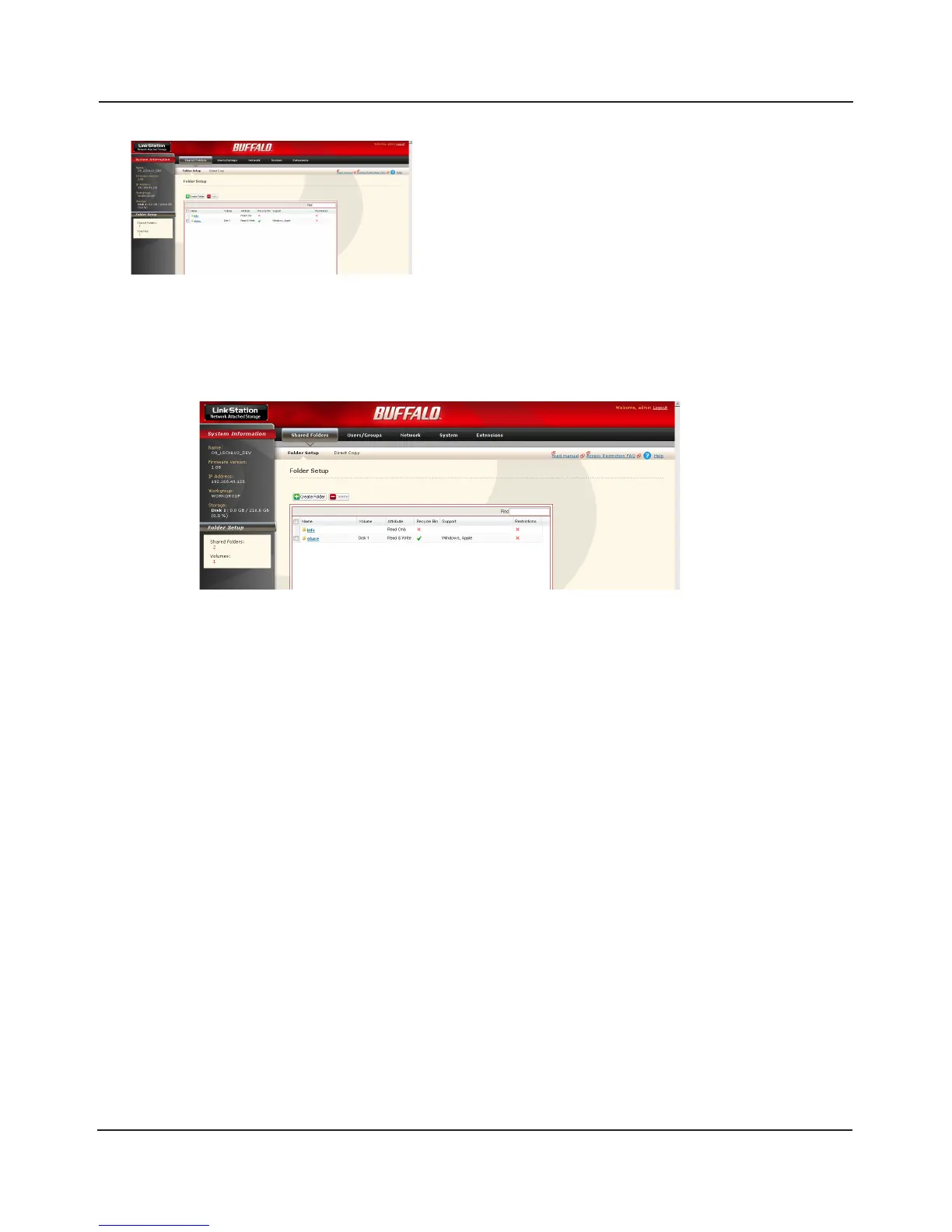 Add/delete shared folders, set access restrictions, and congure direct copy.
