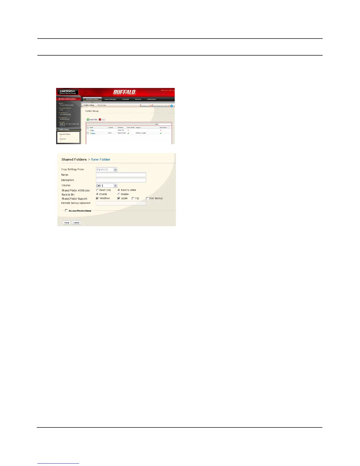 By default, the LinkStation includes one shared folder “share”. You may add additional folders as