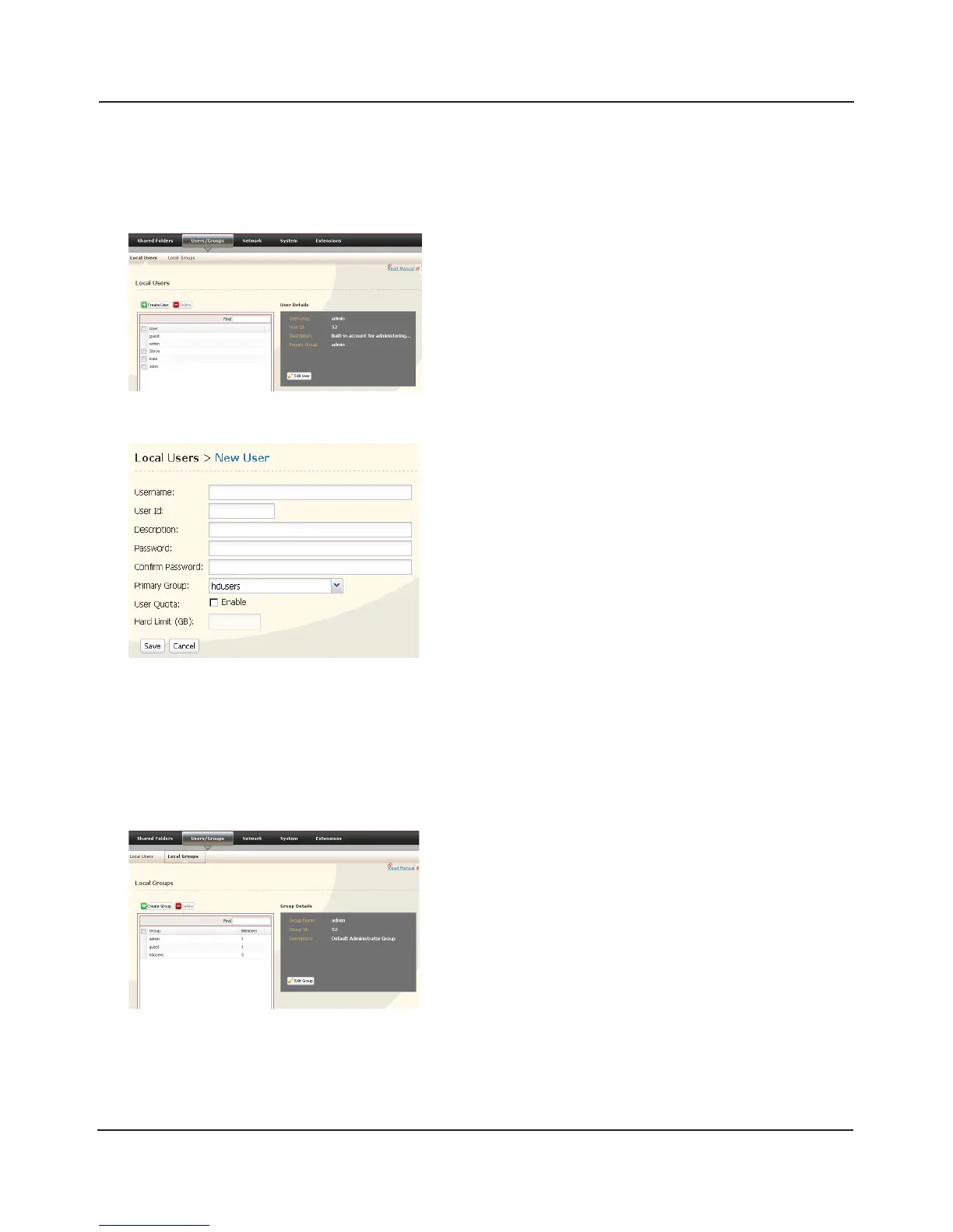 1 In the Web Admin interface, select [Users/Groups] -