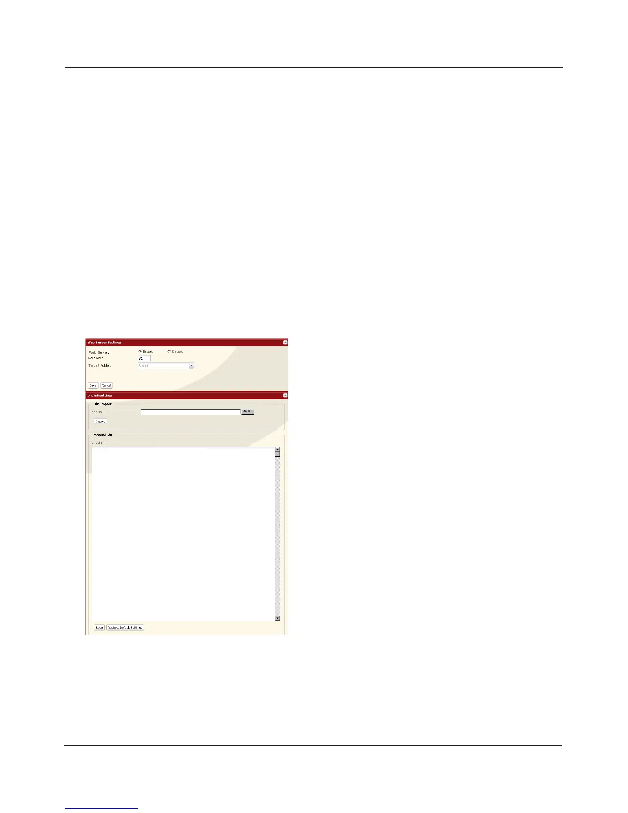 Navigate to [Network] – [Web Server] – [Web Server Settings] in the Web Admin interface and