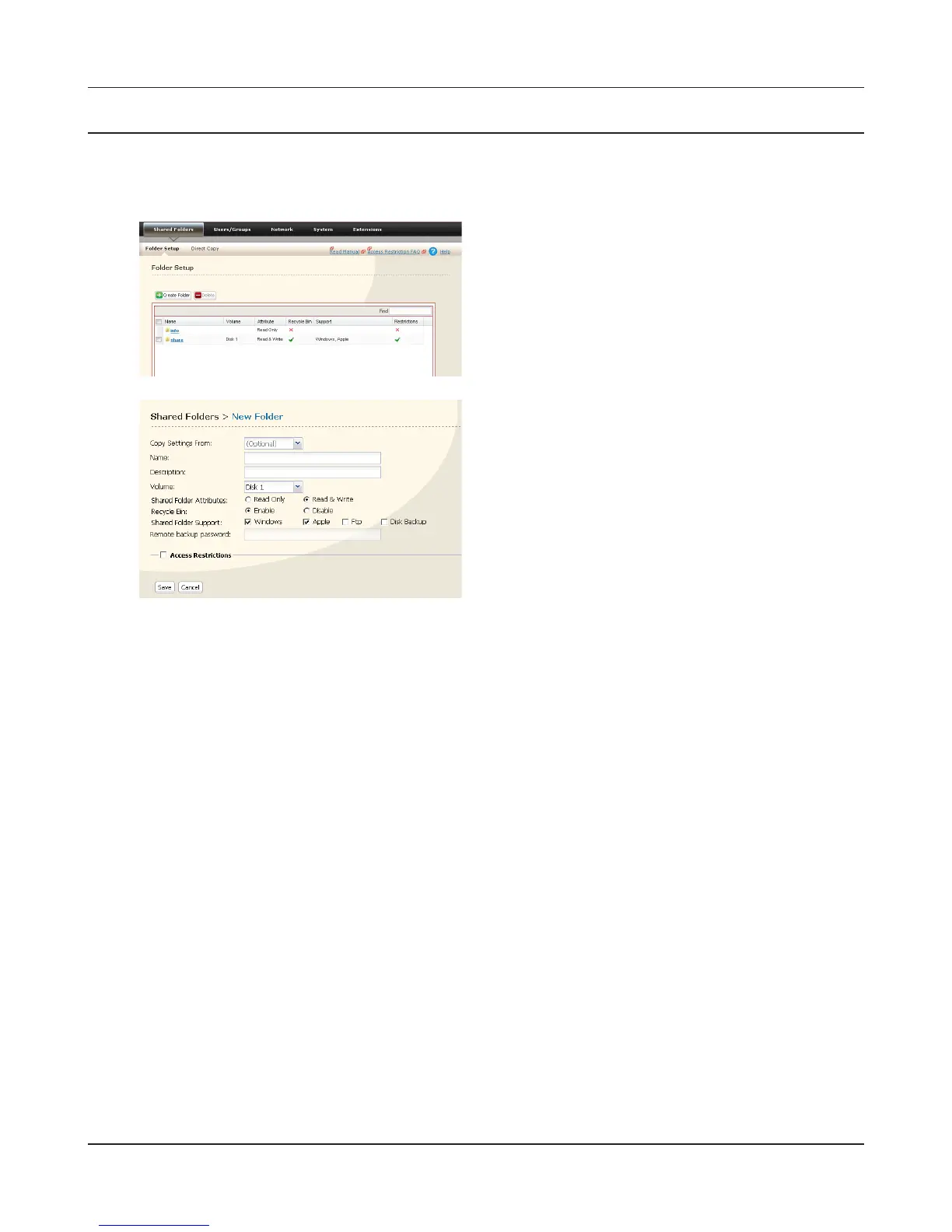 • To set a shared folder to Read-Only