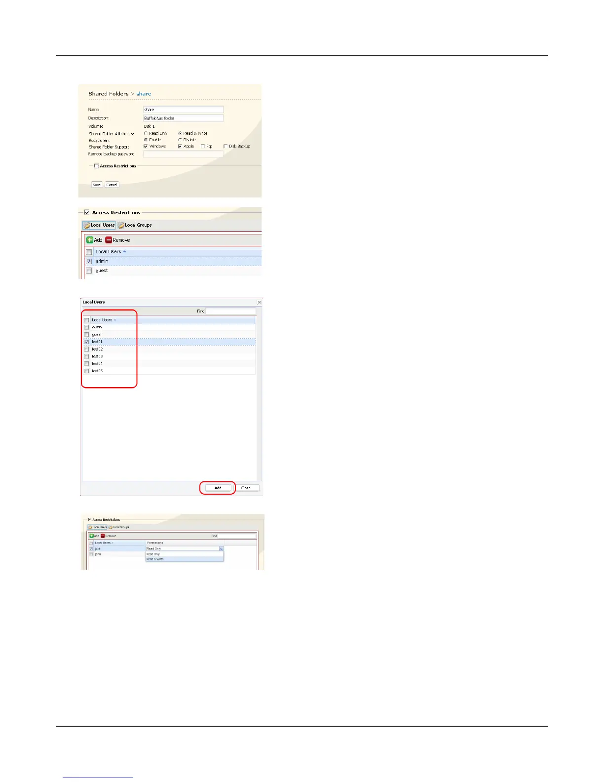 • If both [Read only] and [Read & Write] permissions are given to a user, that user will have read-only