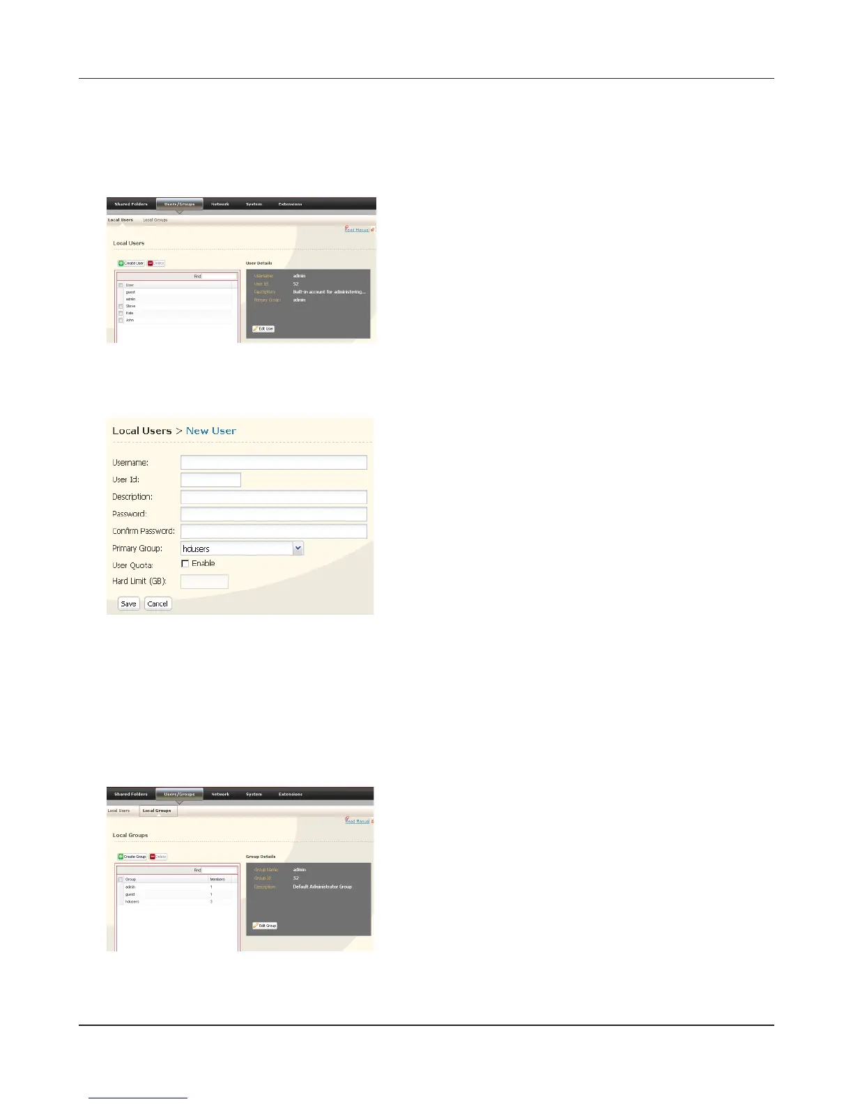 1 In the Web Admin interface, select [Users/Groups] -