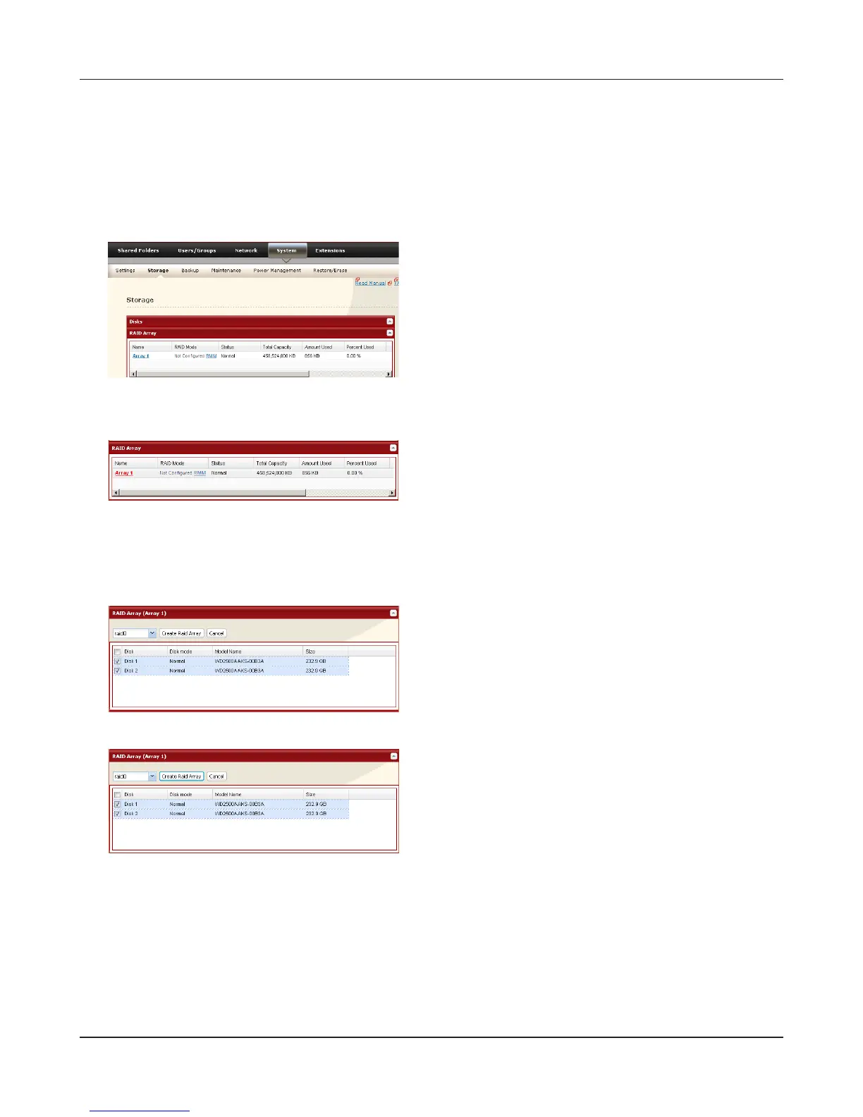 You have set up a RAID 0 array. Turn to page 36 to create a shared folder.