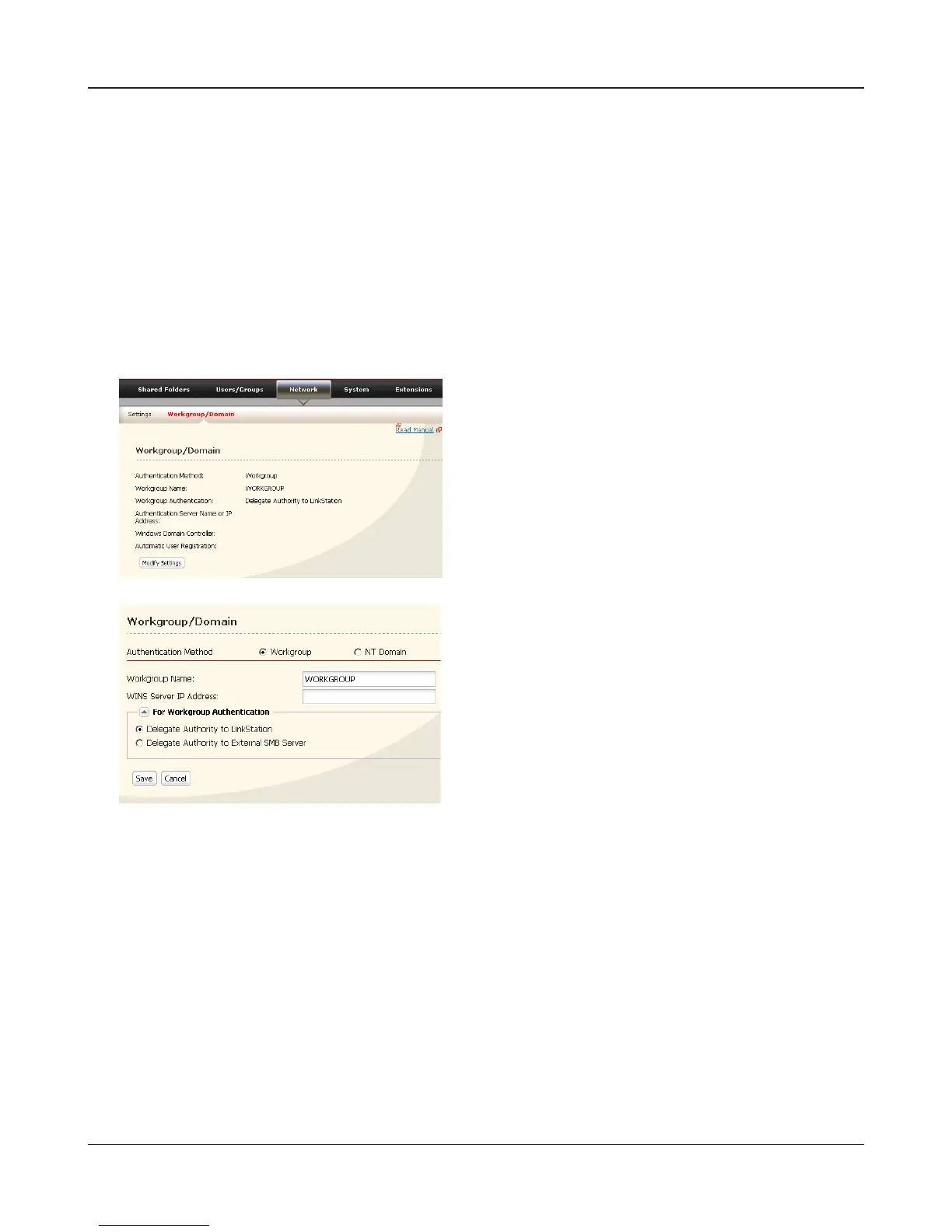 The LinkStation can download users, groups, and passwords from an NT Domain server. This proce-