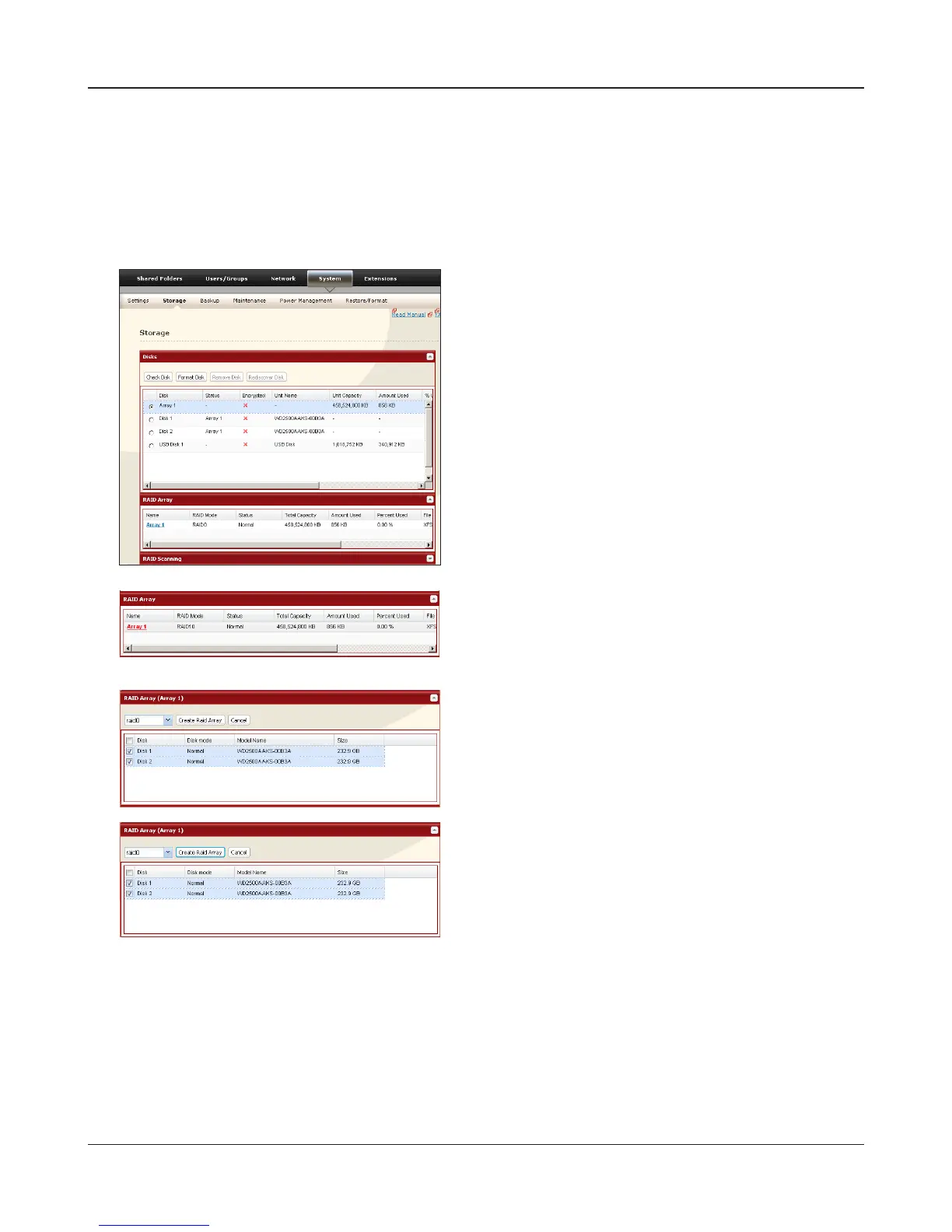 You have set up a RAID 0 array. Turn to page 22 to create a shared folder.