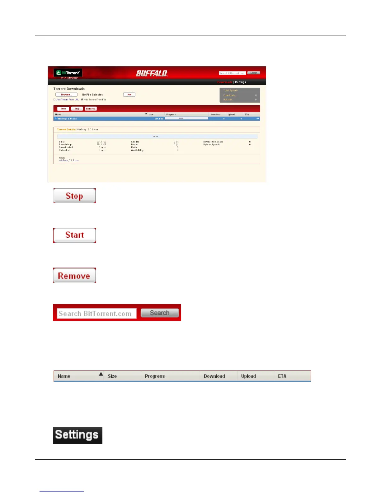 Click [Settings] to display the conguration screen of BitTorrent.