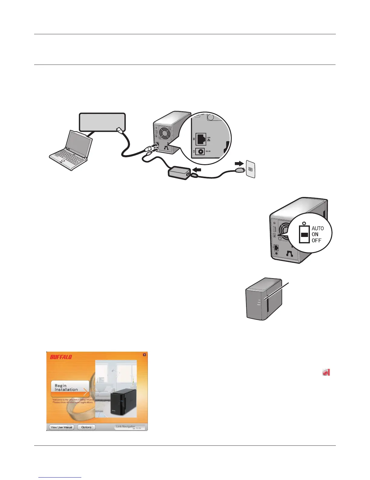 Connect an Ethernet cable and AC adaptor to the LinkStation.