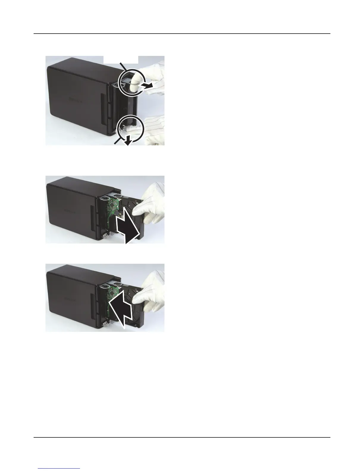 Pull out the tab above the failed drive while press-