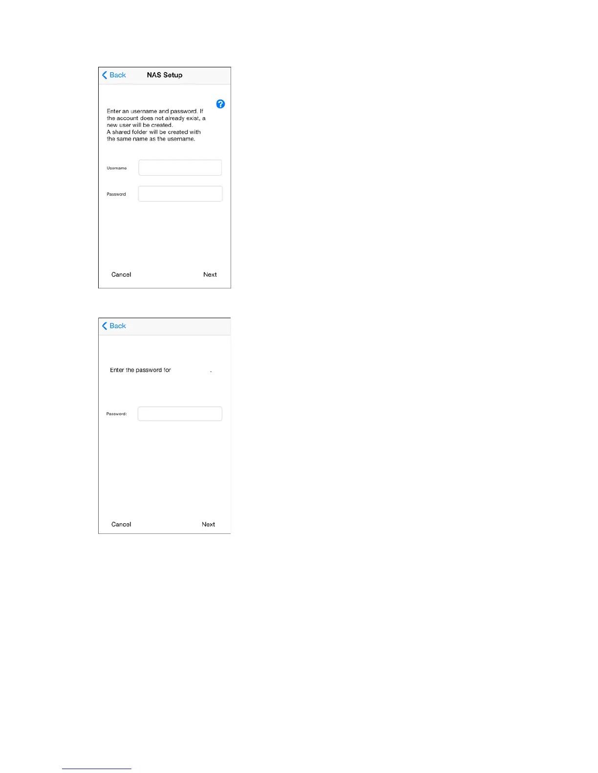4 Enter a username and password. This will create a new user. Tap Next.