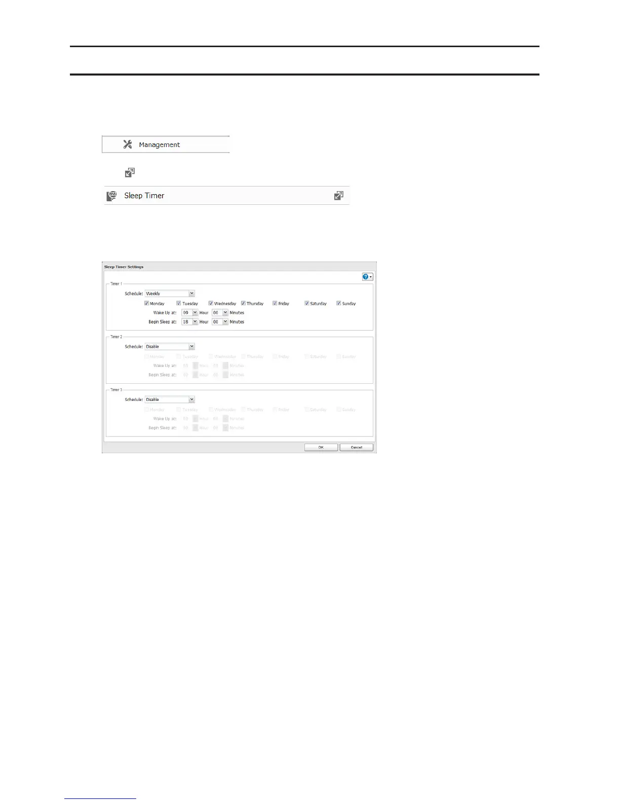 4 Specify the timer interval, wake-up time, and time to go into sleep mode, then click OK.