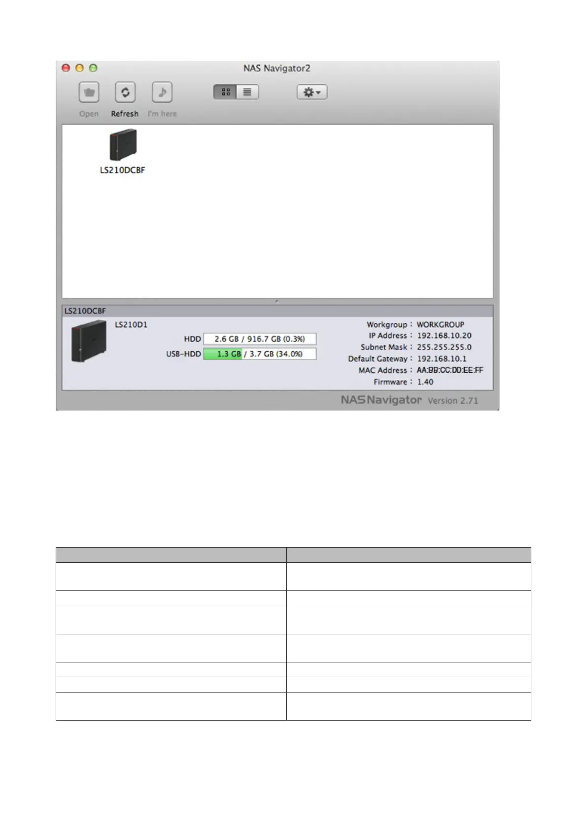 Opens Settings for the selected LinkStation or