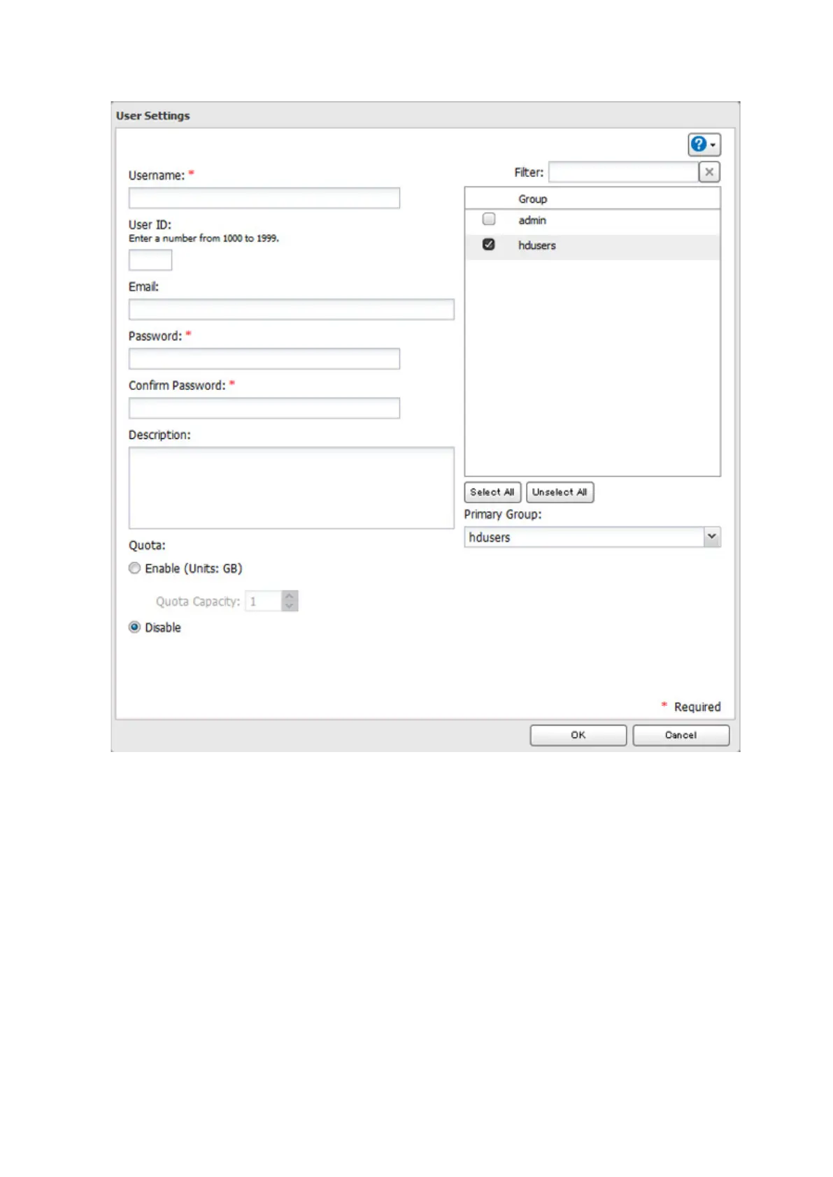 • The user ID should be a number from 1000 to 1999. Each user ID should be unique. If this field is left blank, a