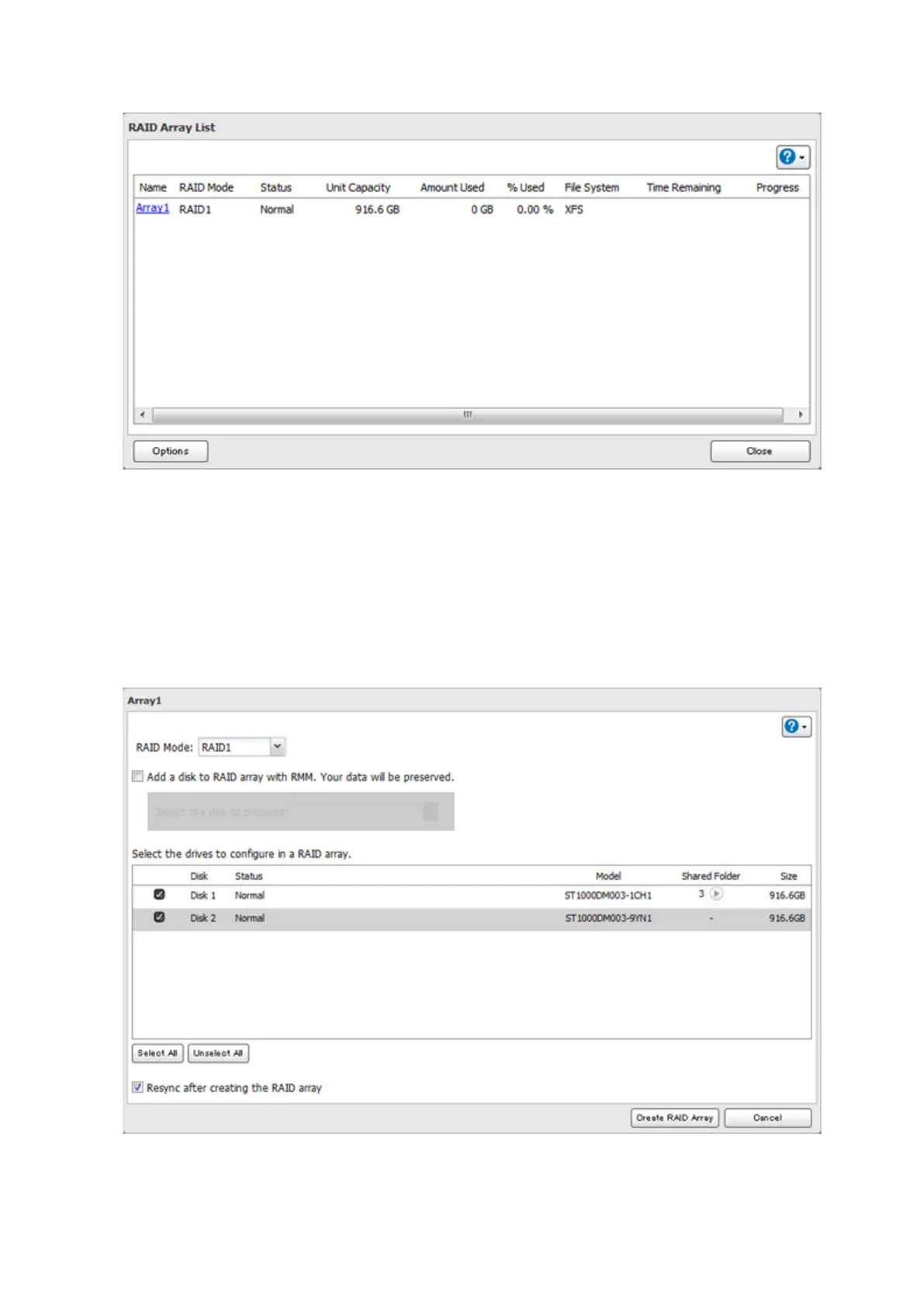 8 Select a RAID mode and the drives to be used, then click Create RAID Array.