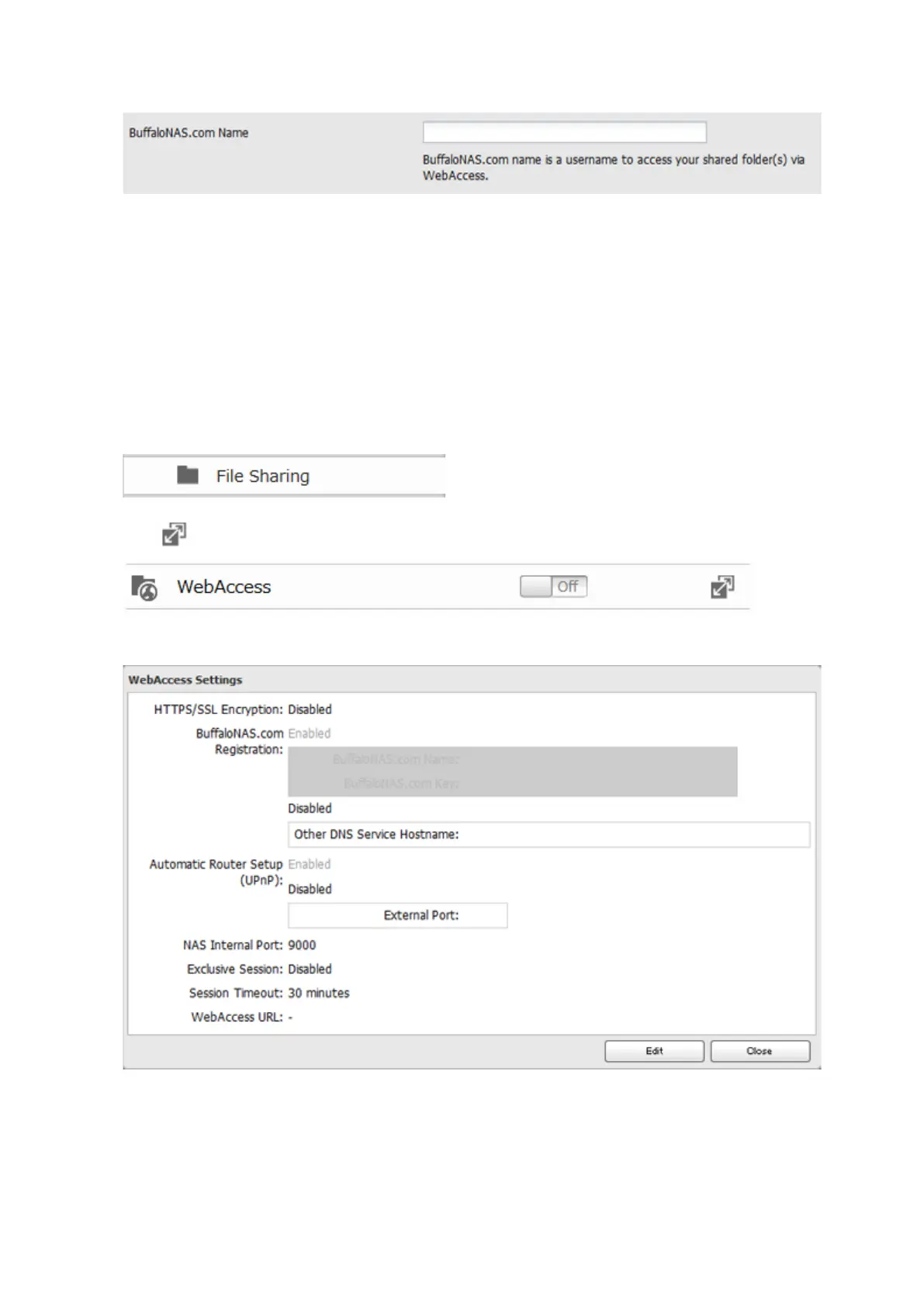 Note: The BuffaloNAS.com name may contain from 3 to 20 alphanumeric characters, underscores (_), and