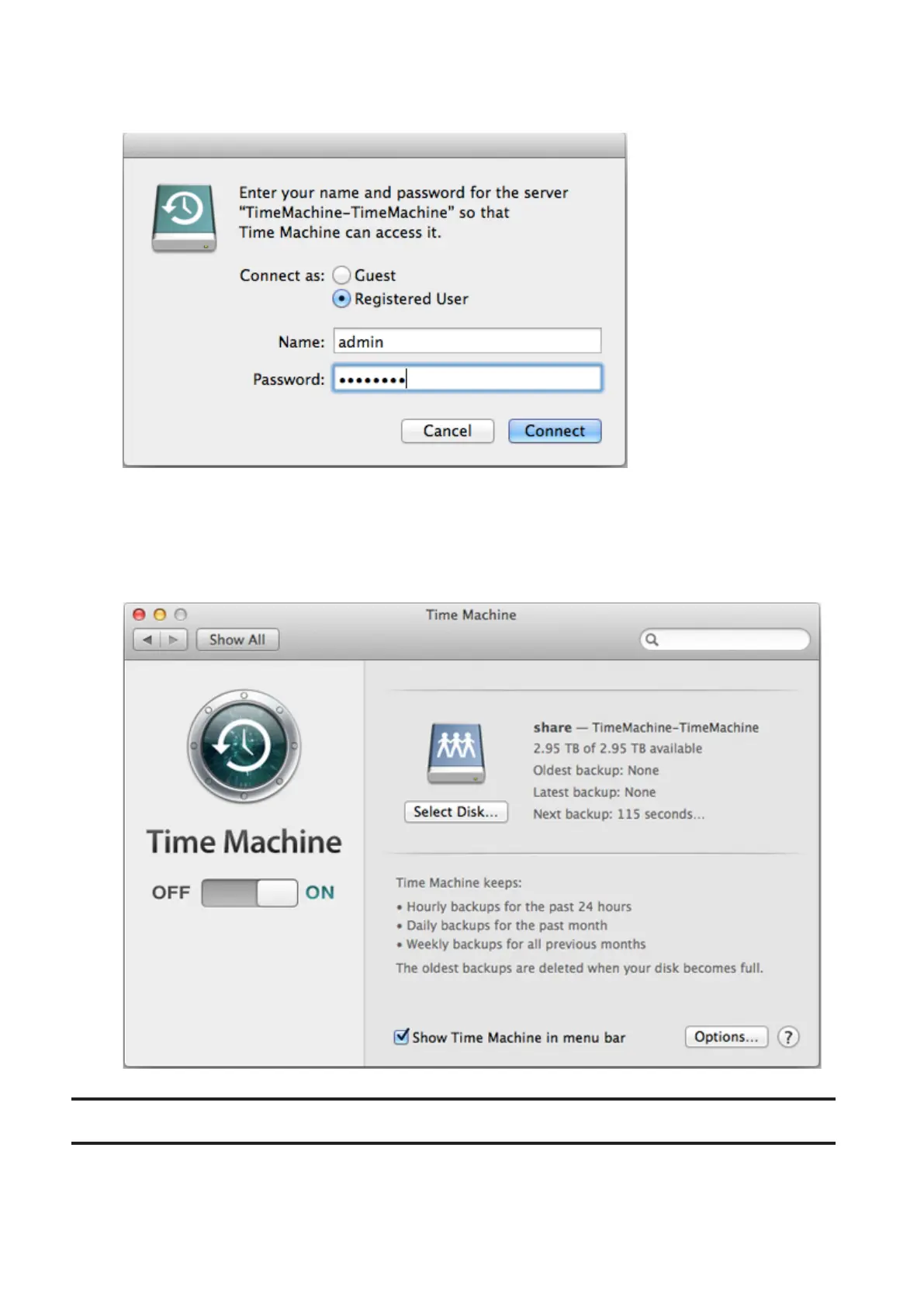 20 Enter a username and password with the rights to access the shared folder on the LinkStation, then click