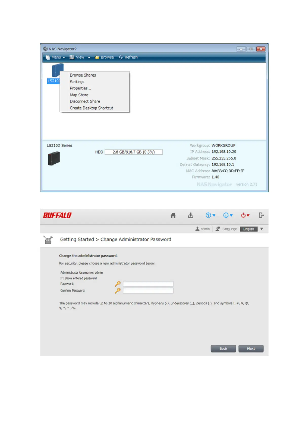 2 Right-click on your LinkStation's icon and select Settings. On the Mac, select the LinkStation's icon while