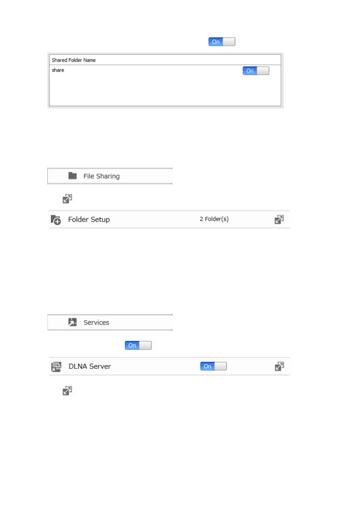 3 Move the switch for the folder you'll use for DLNA media to the position as well.