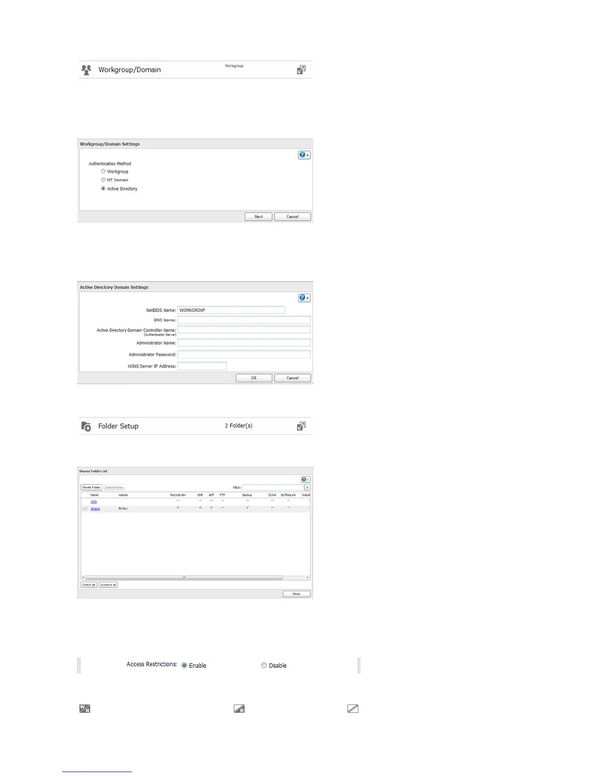: Read and write access allowed : Read access allowed : Access prohibited
