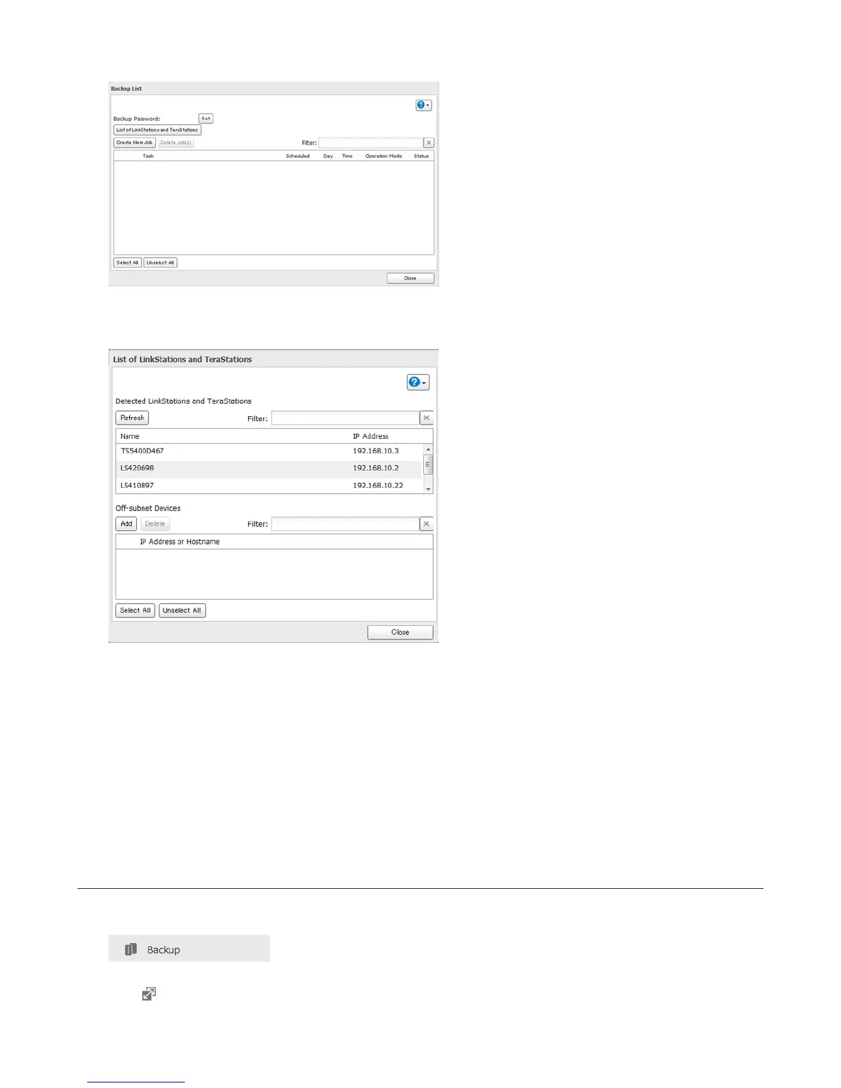 4 Select the IP address of the LinkStation or TeraStation that you want to set as the backup target. Click Add, enter