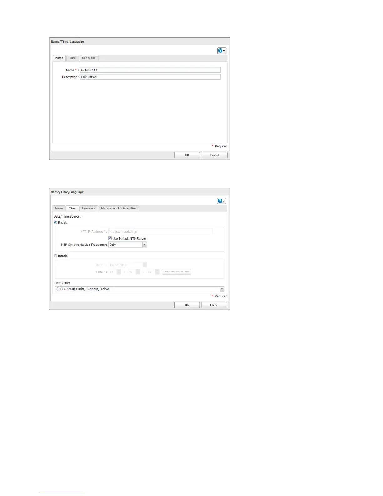 By default, the LinkStation adjusts its clock automatically by using a default NTP server. This NTP server belongs to
