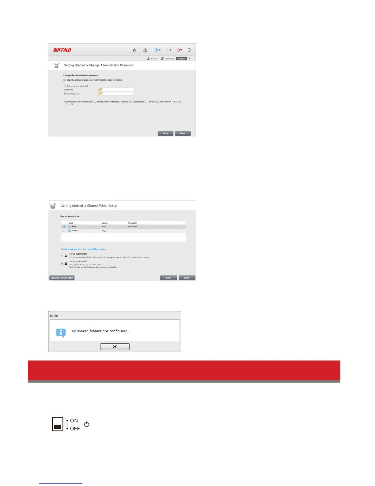 5 Configure levels of sharing for all existing shared folders (public or private) to complete the initial setup wizard.