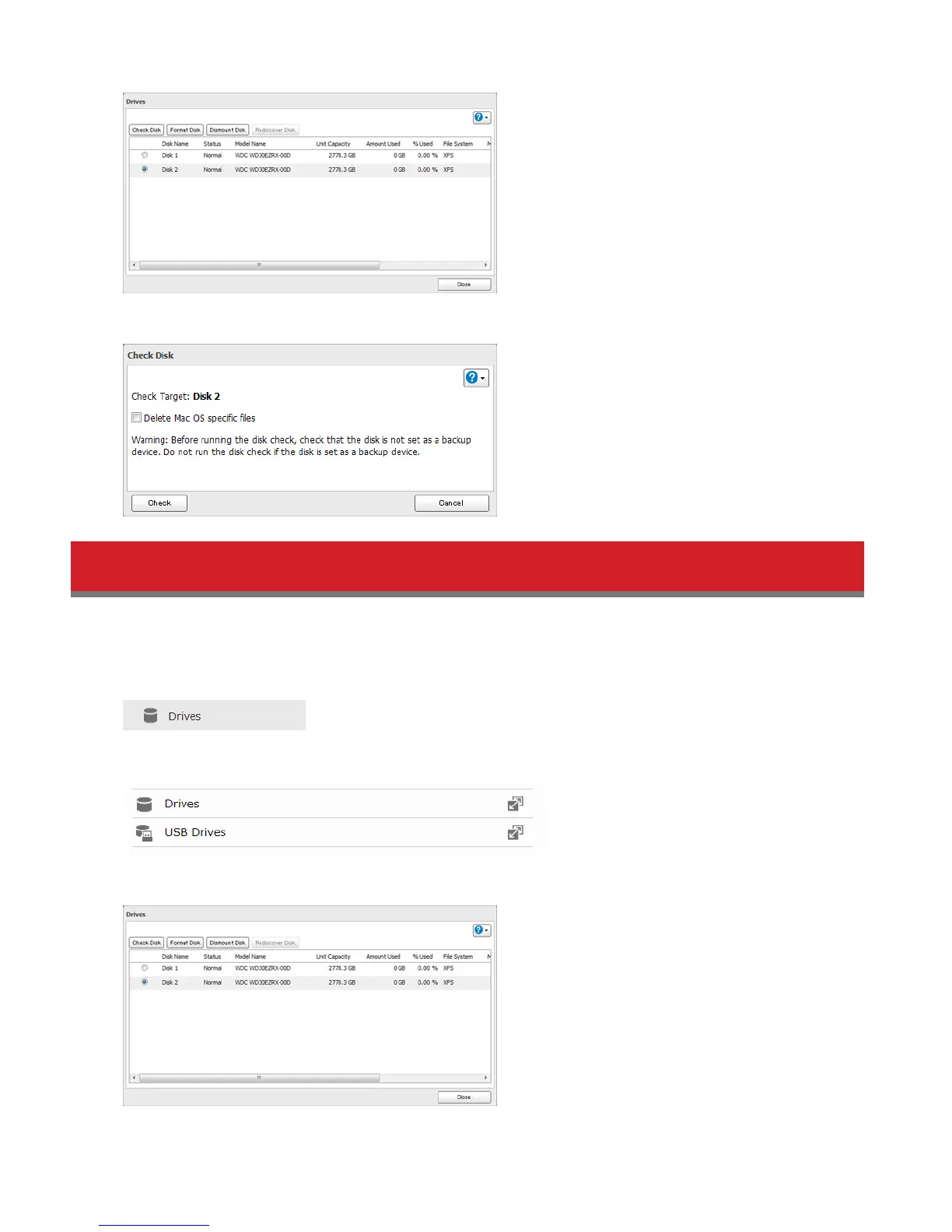 2 Select Drives to format an internal drive or USB Drives to format an external drive.