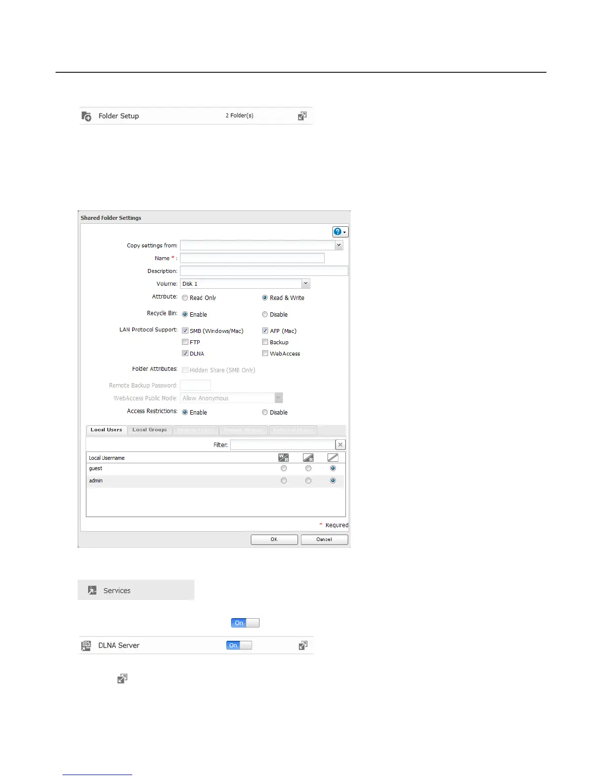 6 Move the DLNA Server switch to the position to enable DLNA.