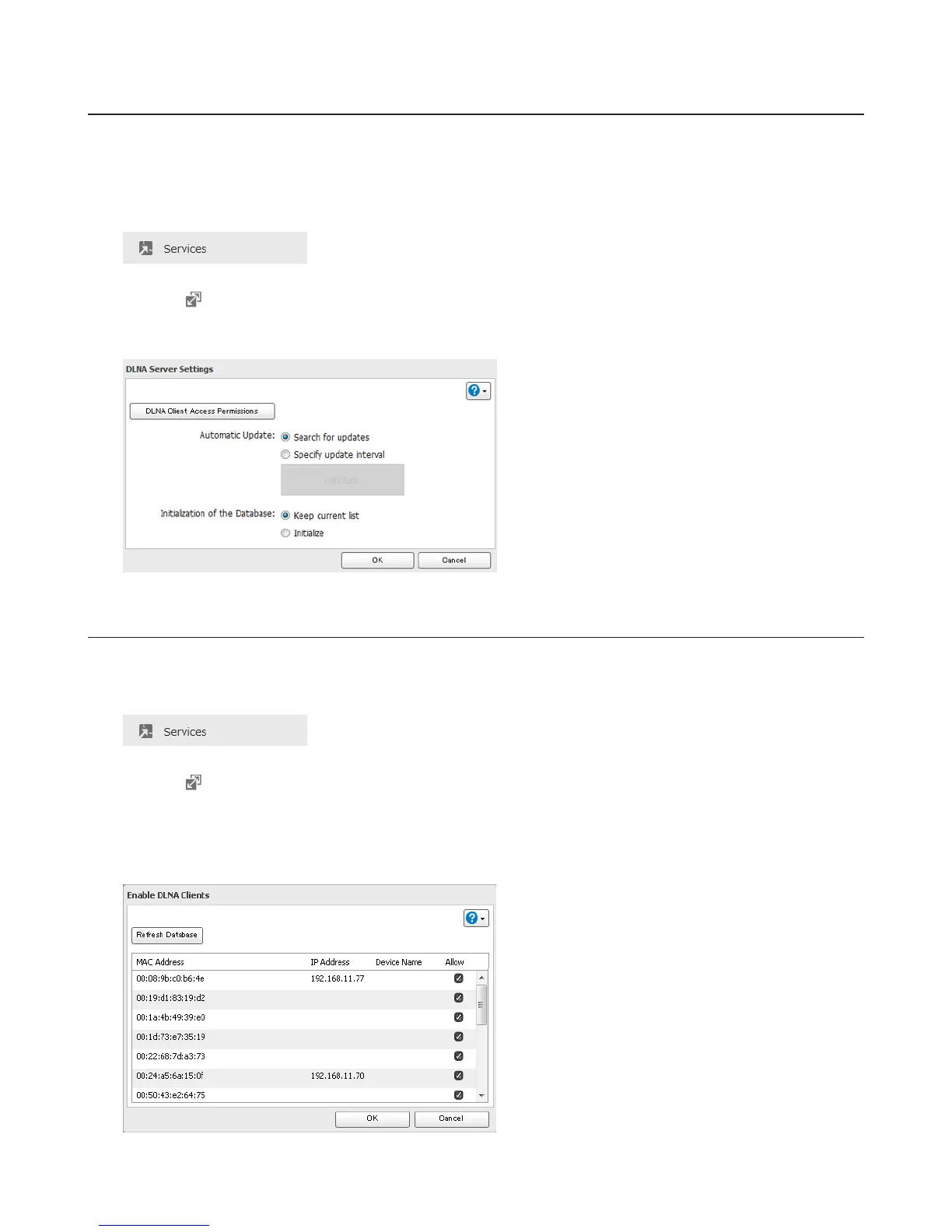 When new movies, photos, and music files are added to the LinkStation’s DLNA folder, the database must be updated