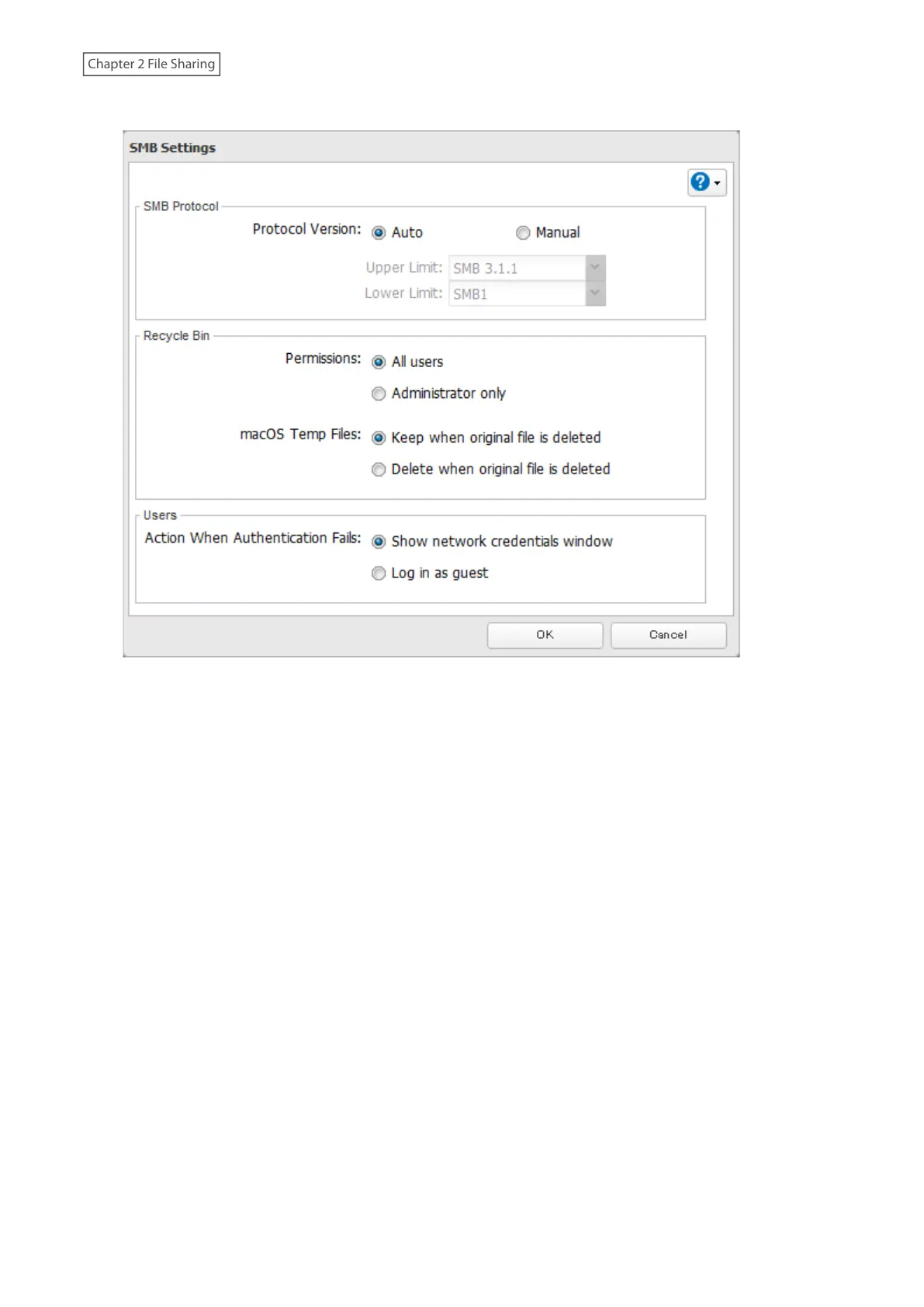 4 Under “Users”, change the Action When Authentication Fails” to “Show network credentials window.