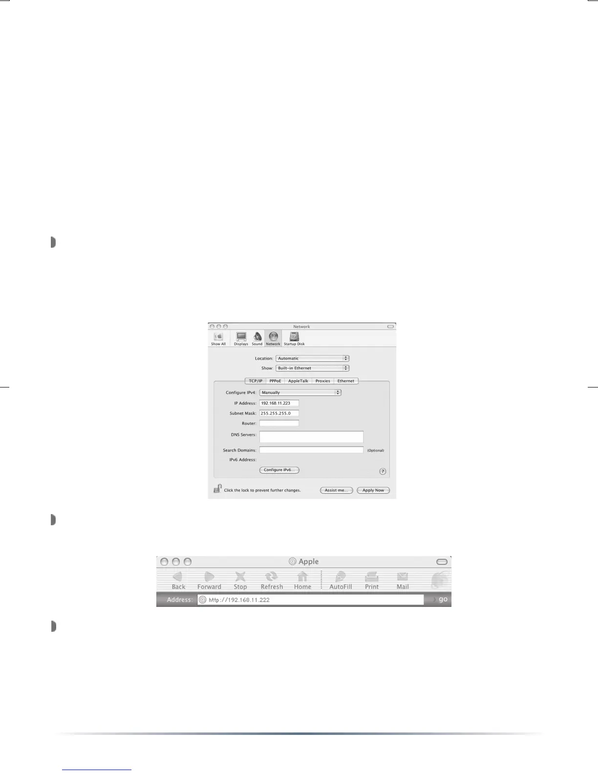 Open a Web Browser (Version 4.5 or later) and enter 192.168.11.222
