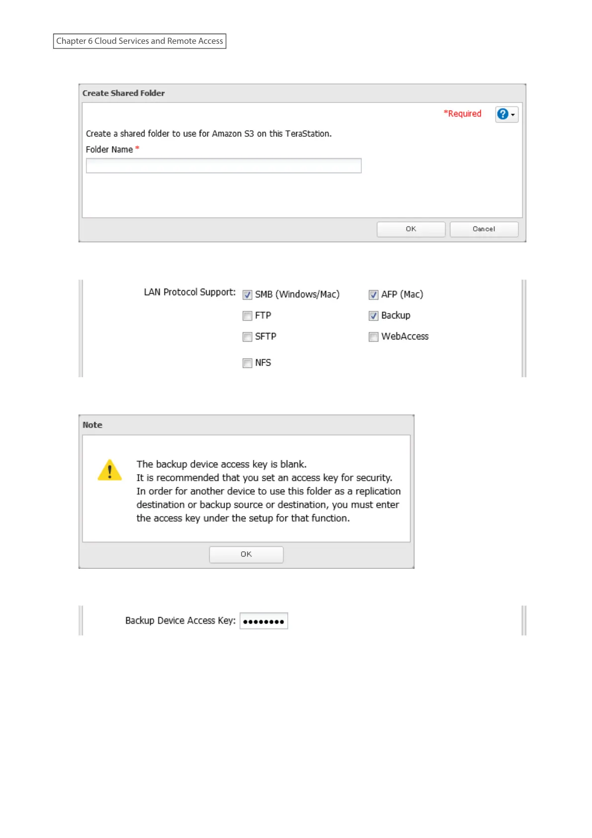 9 Enter the desired characters into the backup device access key field and click OK.
