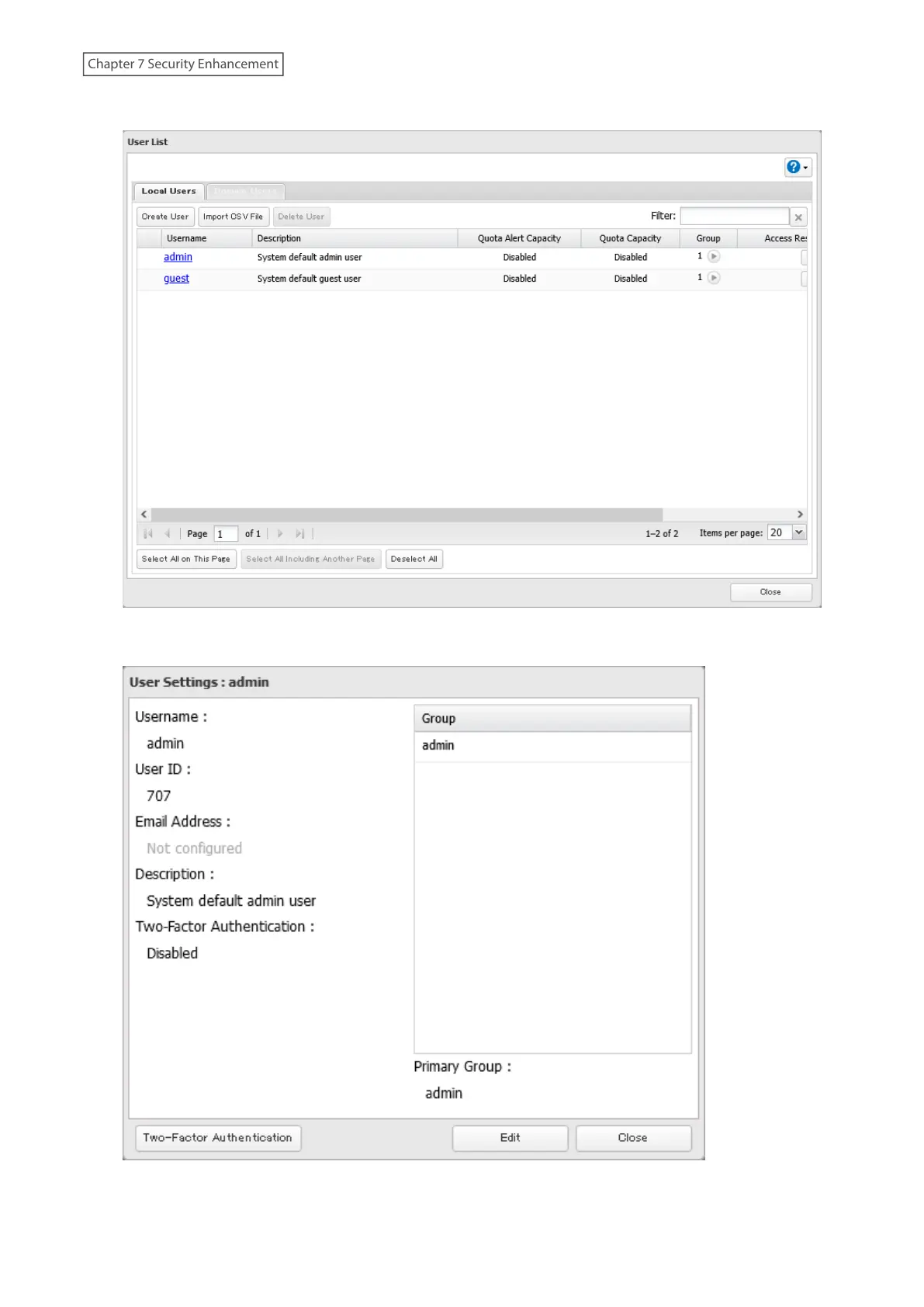 3 Select the logged-in user for whom two-factor authentication will be enabled.