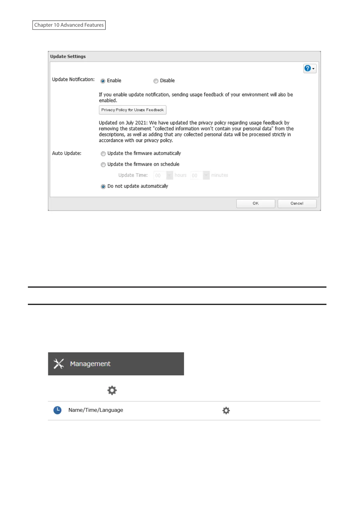 If update notification is enabled, it will also automatically enable sending usage feedback to Buffalo. If you don’t