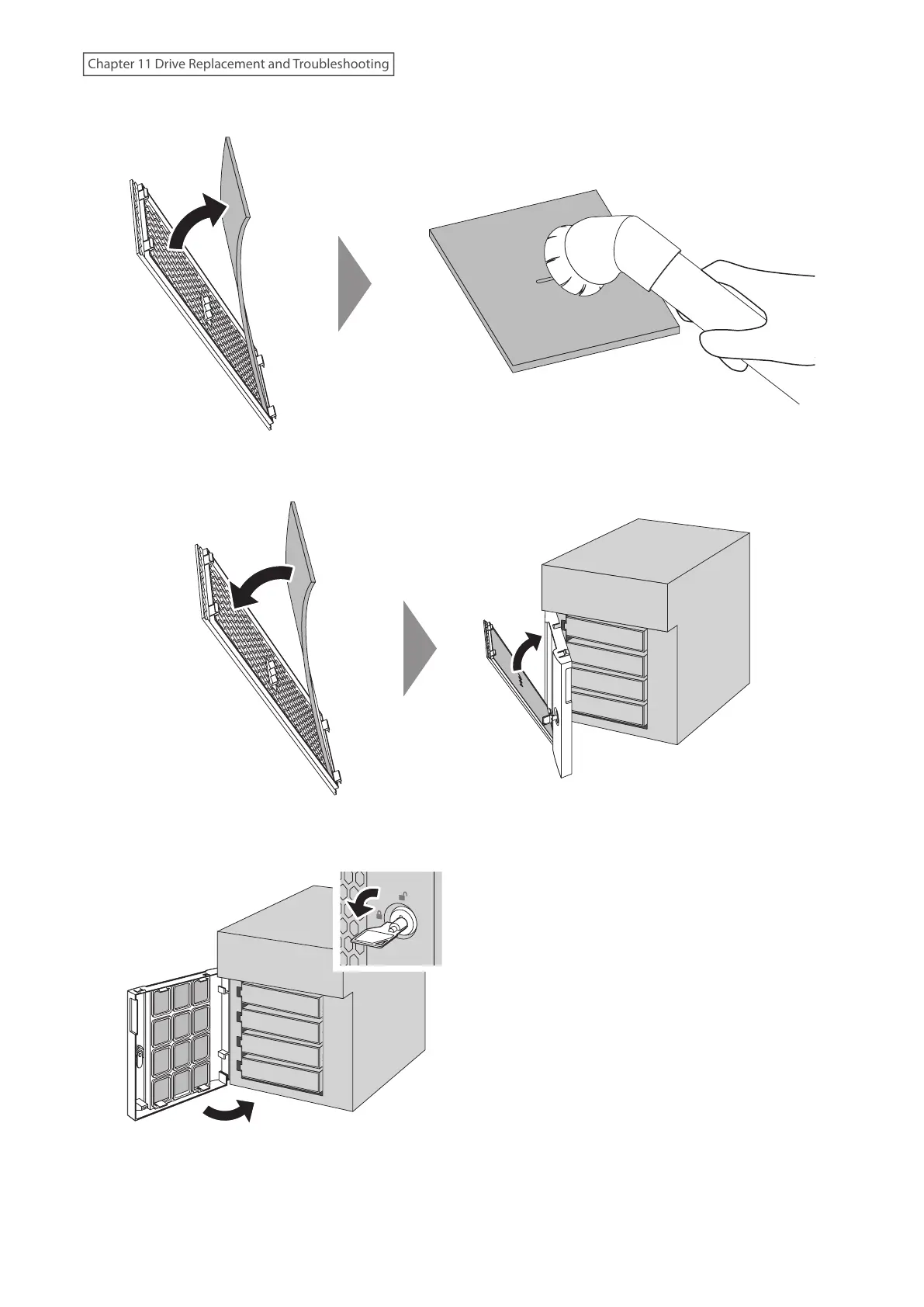 3 Remove the dustproof filter from the front cover and clear any dust, such as by using a vacuum cleaner.