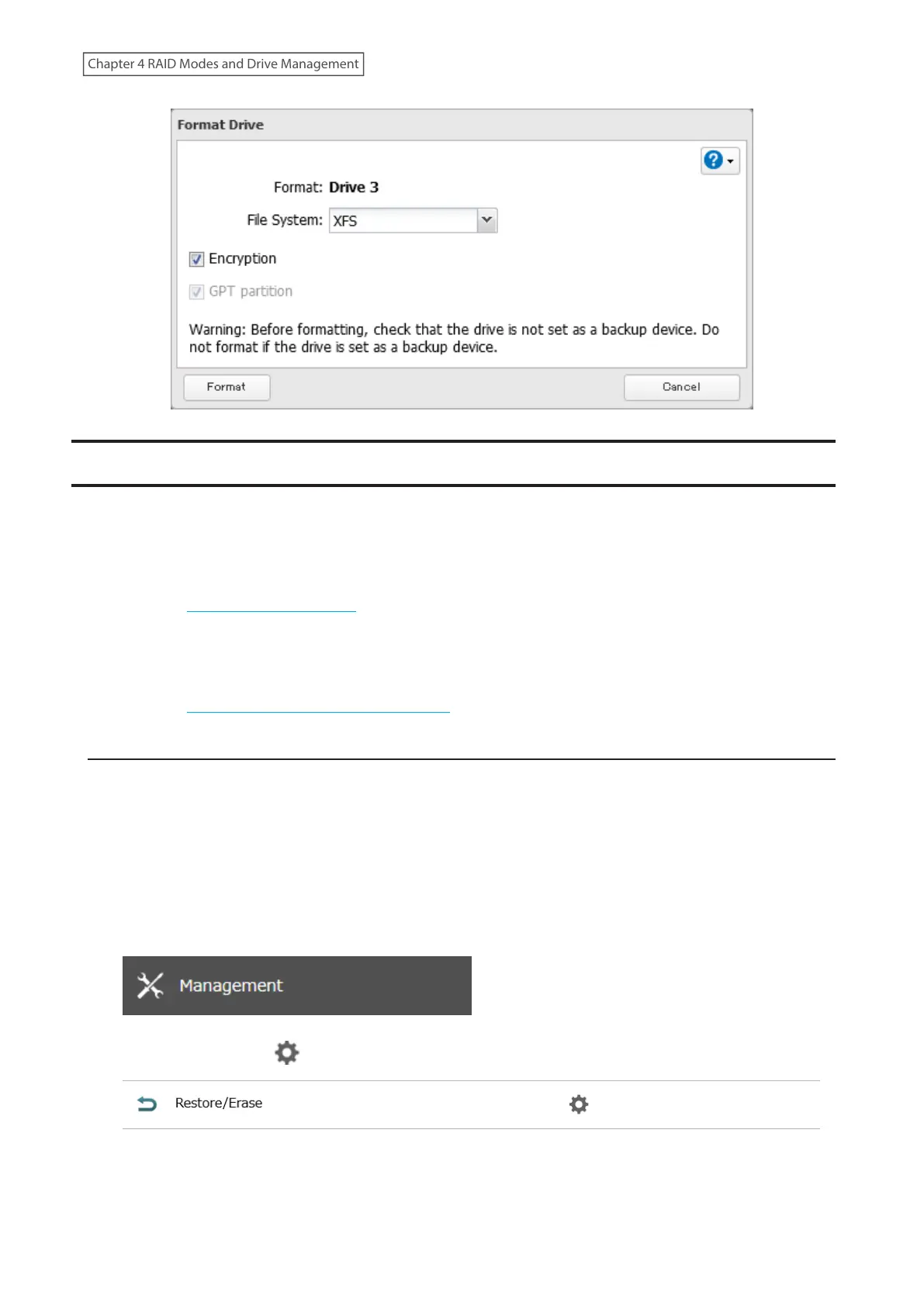 For data erasure, the TeraStation offers both drive formatting and Secure Erase features. Select the data erasure
