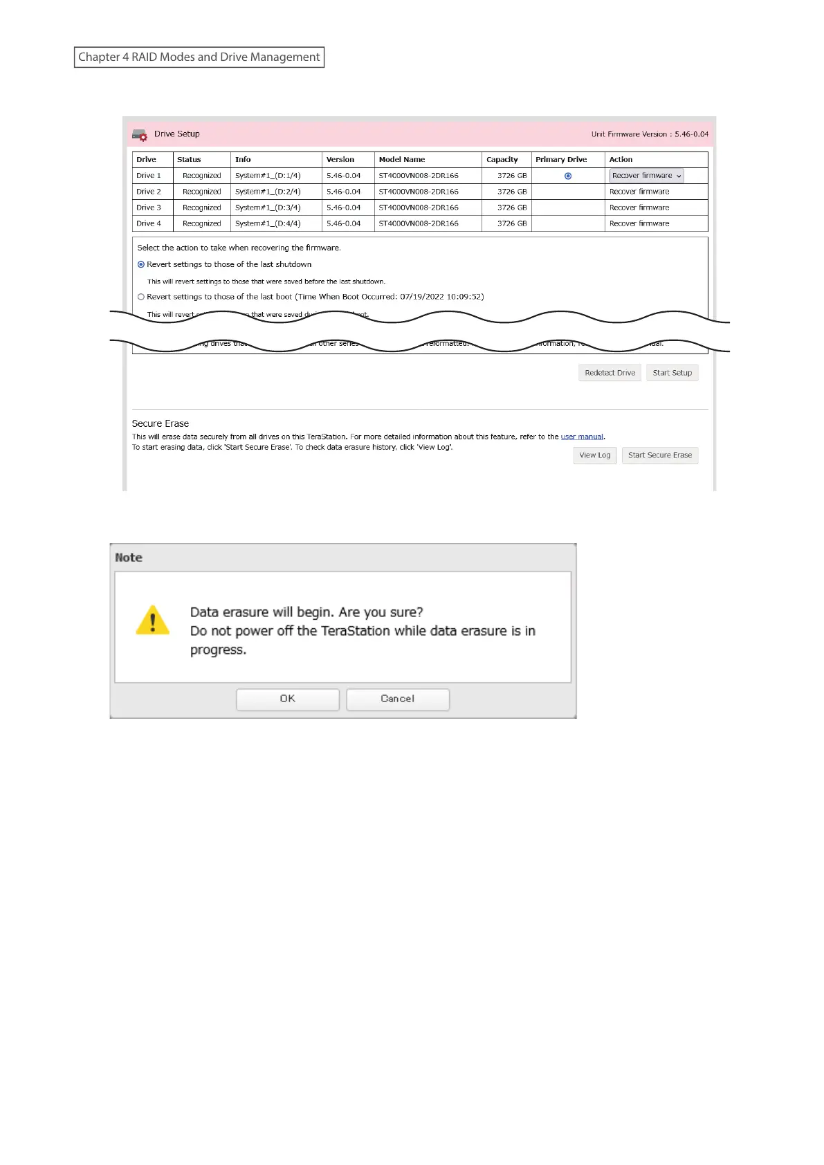 Note: The data erasure process will be run on multiple drives at the same time. The full process will take about