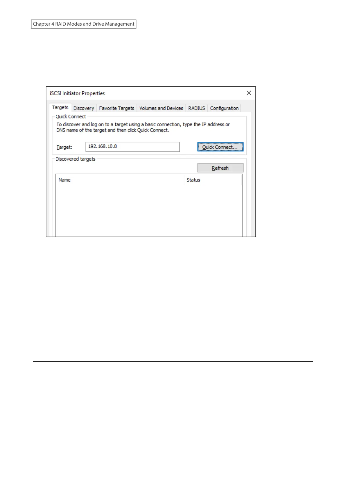 2 Enter the IP address of the TeraStation into the “Target” field and click Quick Connect.