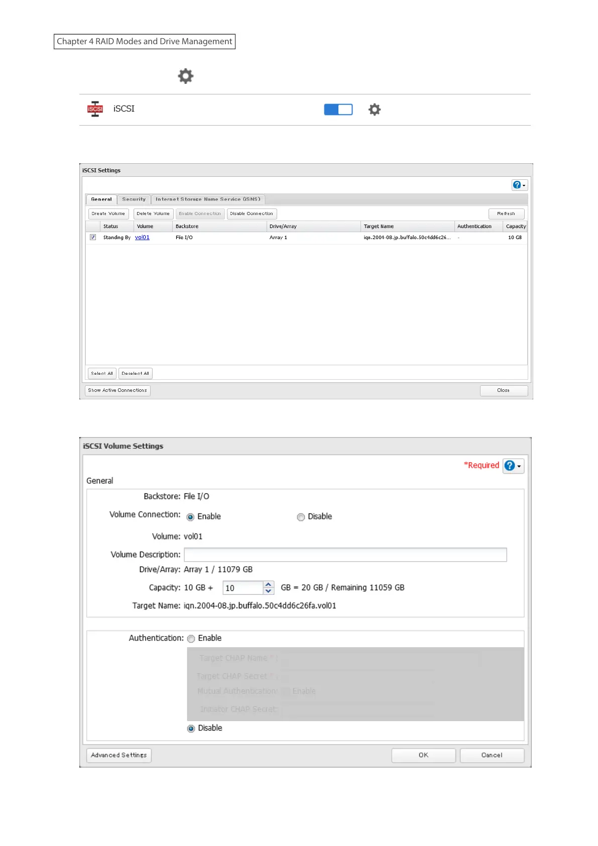 2 Click the settings icon ( ) to the right of “iSCSI”.