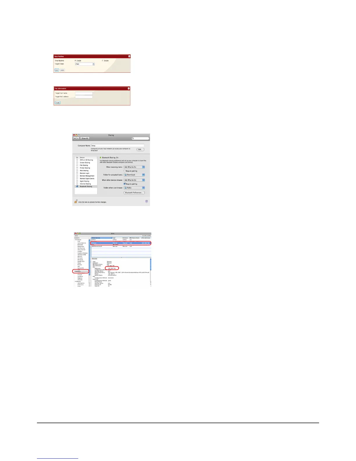 • A Macintosh computer’s Ethernet MAC address is available from its network page.
