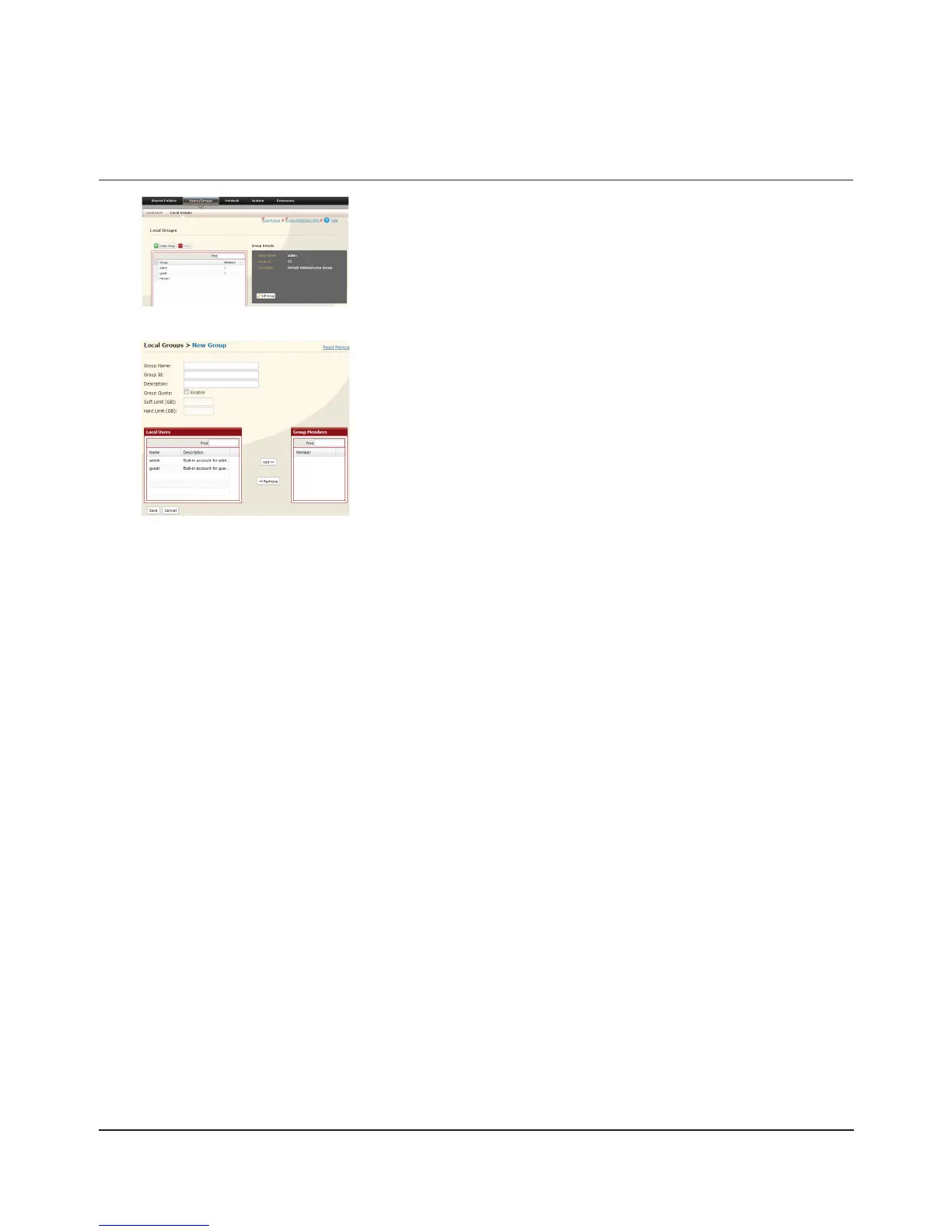 Click [Users/Groups] - [Local Groups] in the 1 Web Admin interface.