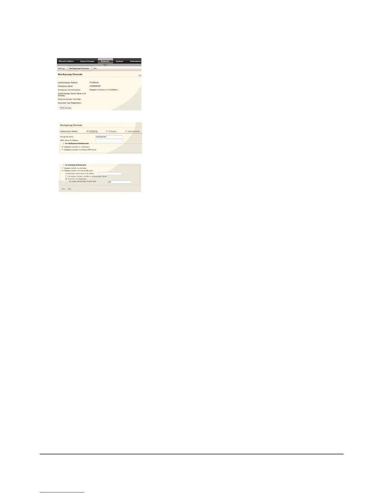 In the Web Admin interface, click [Network] - [Workgroup/Domain] -