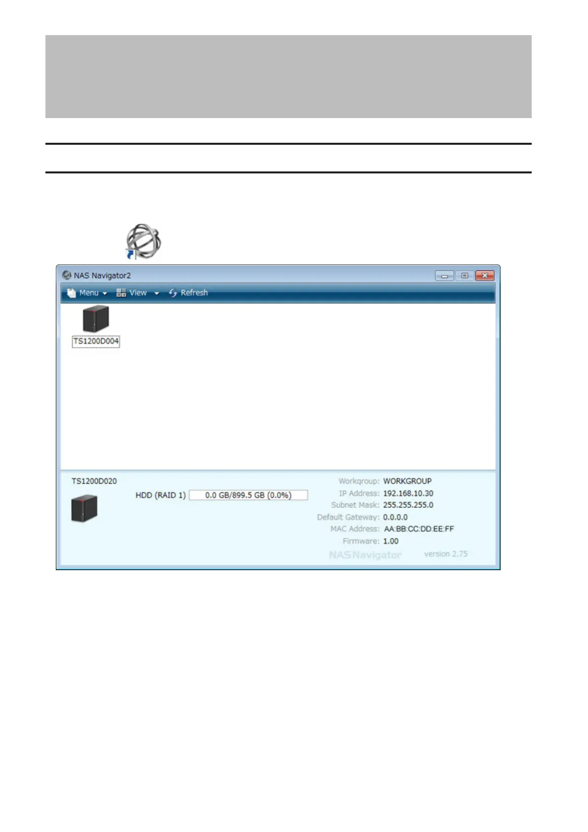 NAS Navigator2 is a utility that makes it easy to display Settings, change the TeraStation's IP address, or check its