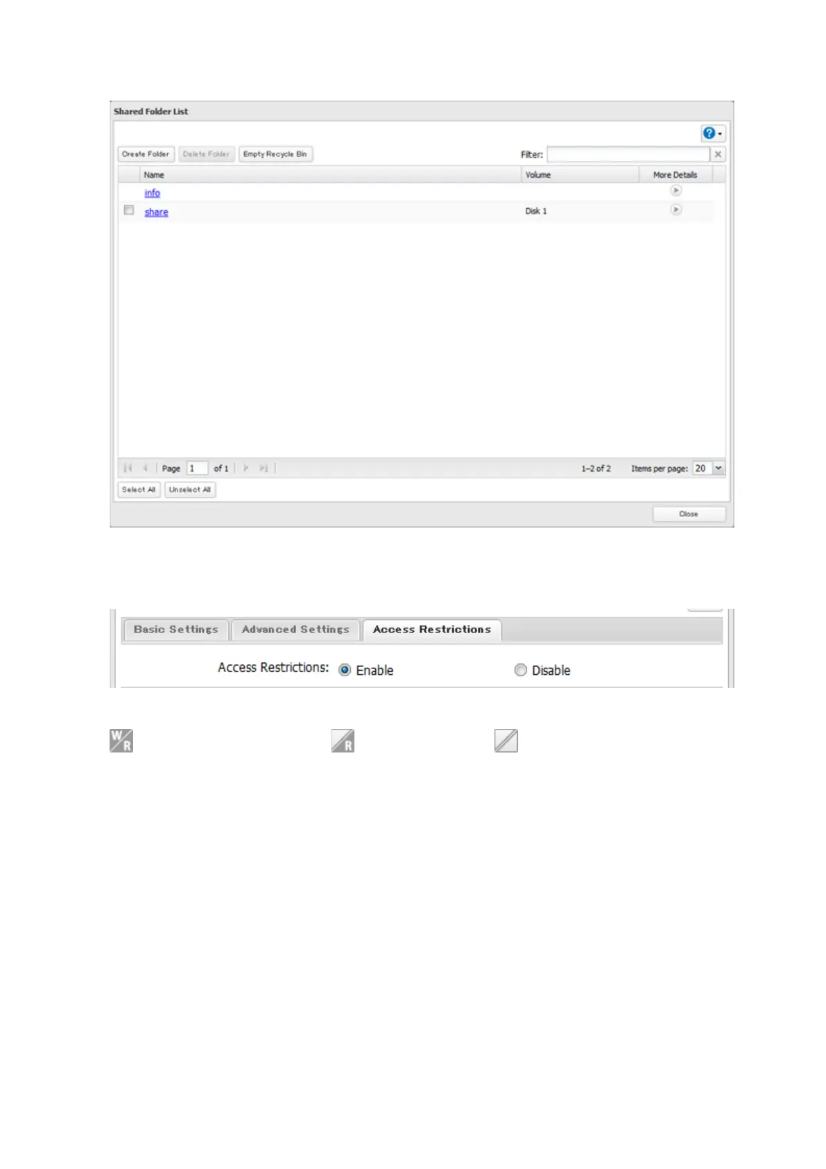 : Read and write access allowed : Read access allowed : Access prohibited