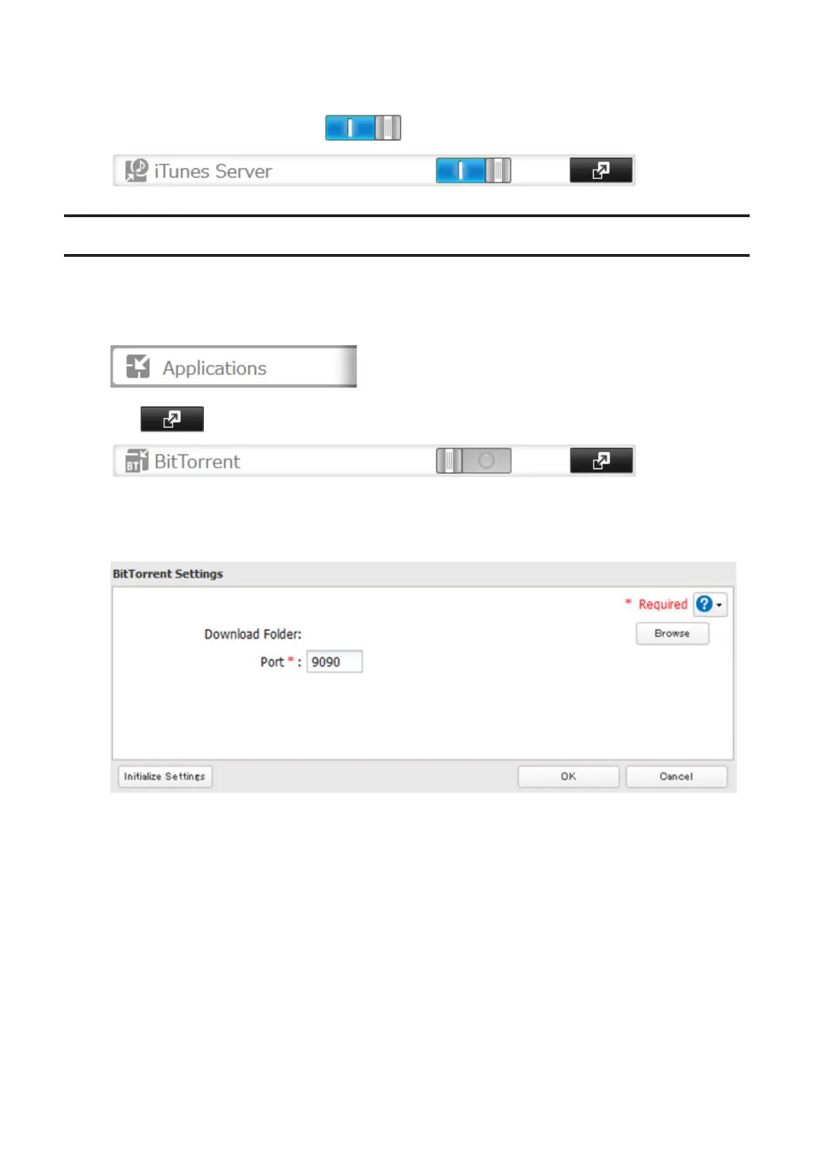 7 Move the iTunes server switch to the position.