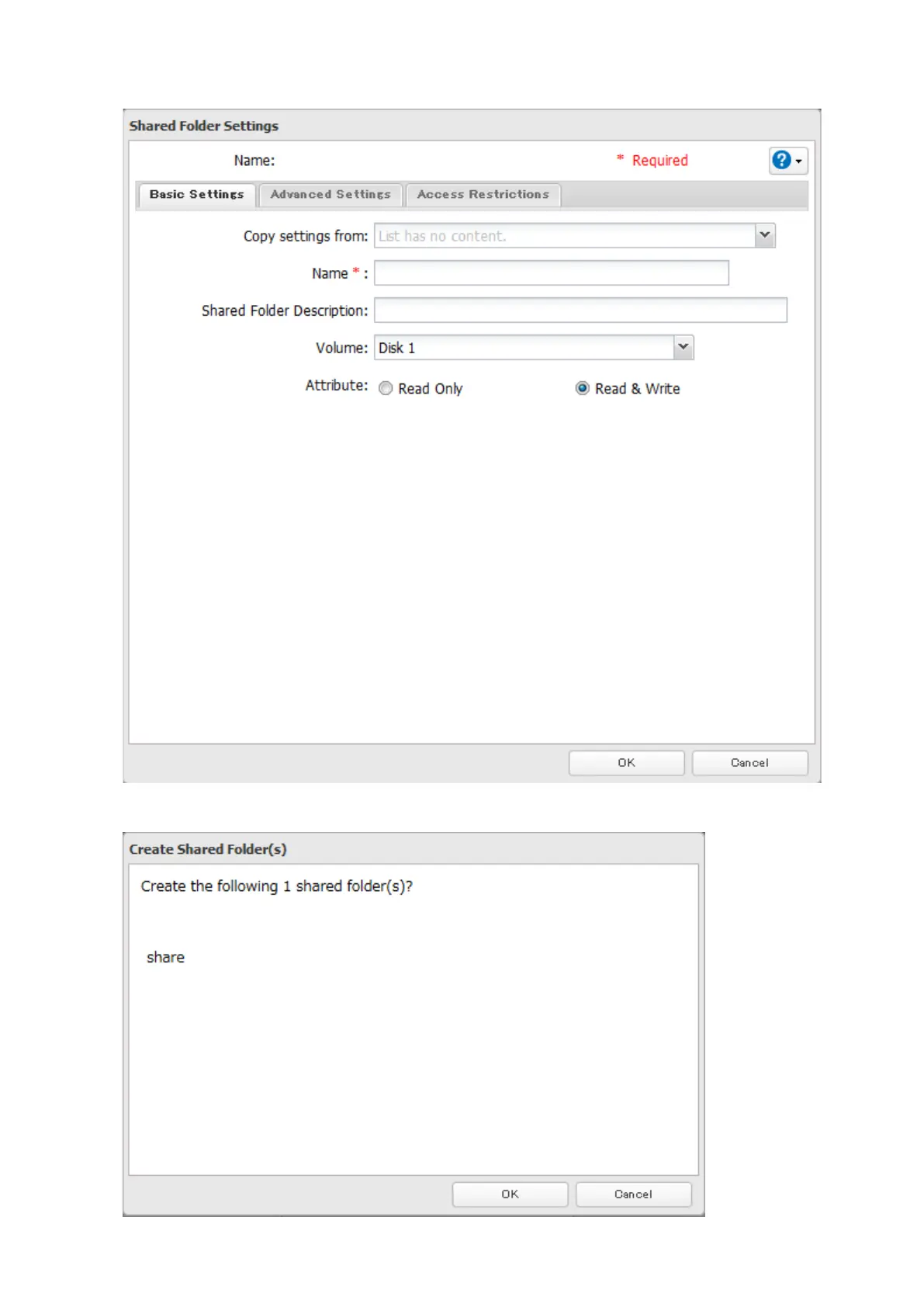 If you want to configure any shared folders, click Edit and configure desired settings. Click OK when finished.