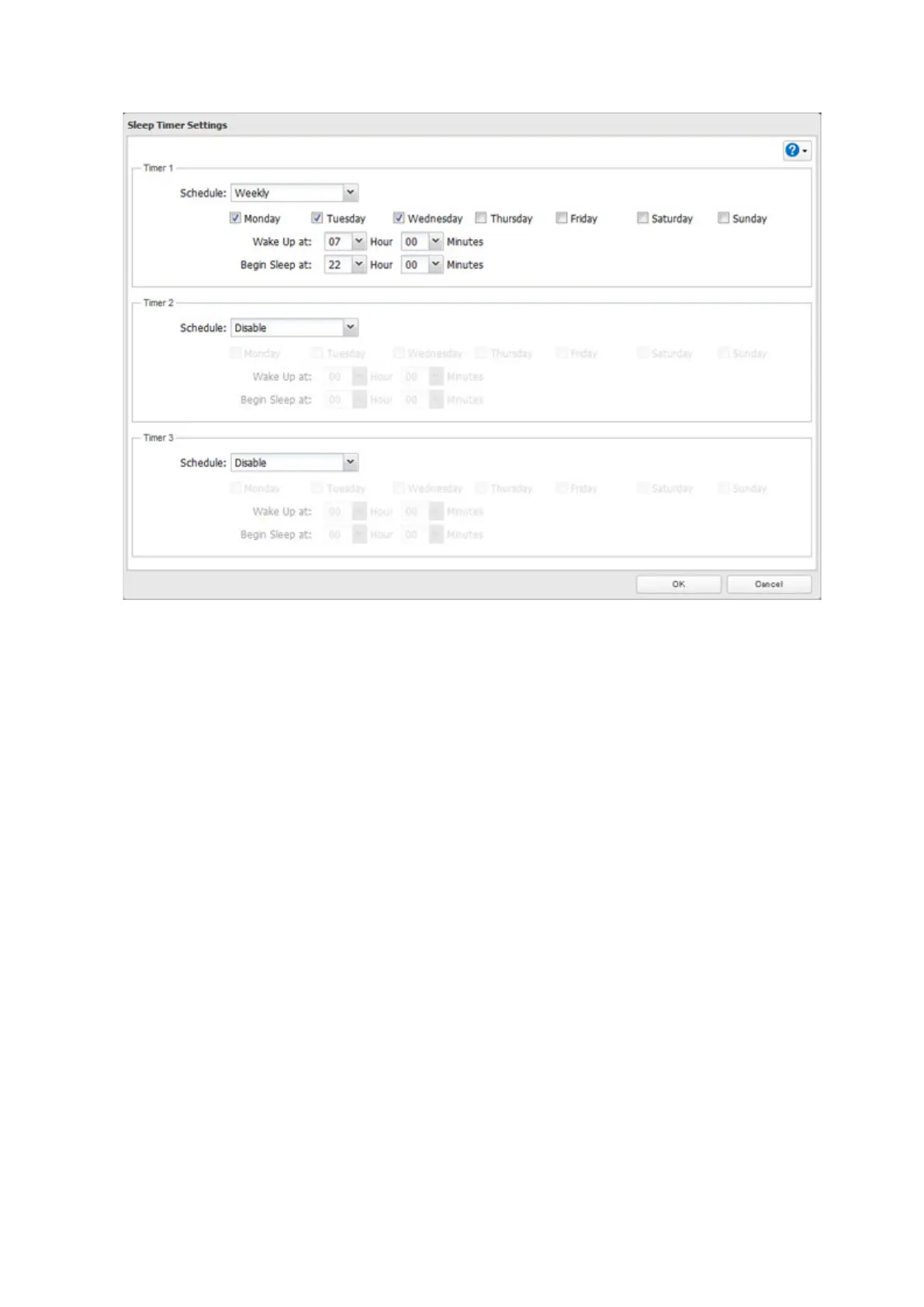 4 Specify the timer interval, wake-up time, and time to go into sleep mode, then click OK.